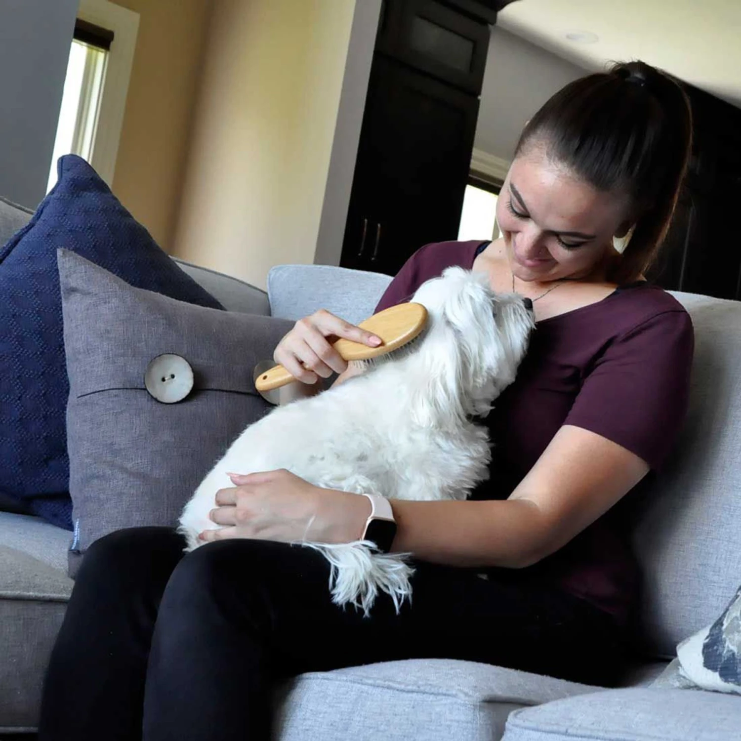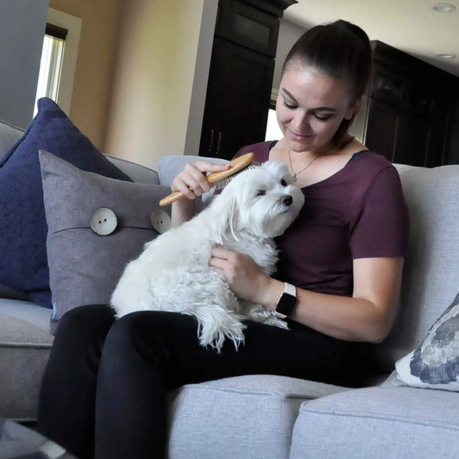 - Long, flowing strokes help distribute natural oils to reveal a soft, shiny coat.