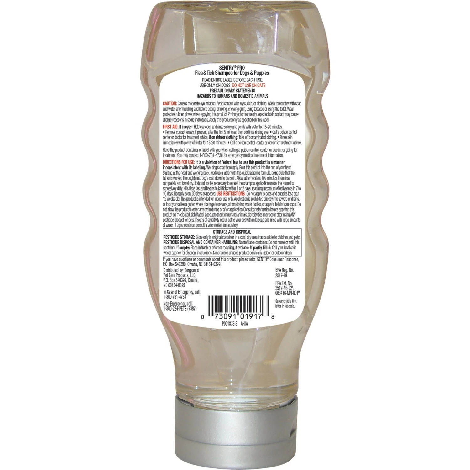 Wet dog’s coat thoroughly. Pour this product into the cup of your hand. Starting at the head and working back, work up a lather with this quick lathering formula, being sure that the lather is worked thoroughly into dog’s coat down to the skin. Allow lather to stand five minutes, then rinse completely and towel dry. It should not be necessary to repeat the shampoo application unless the animal is excessively dirty. Reapply every 30 days as needed.