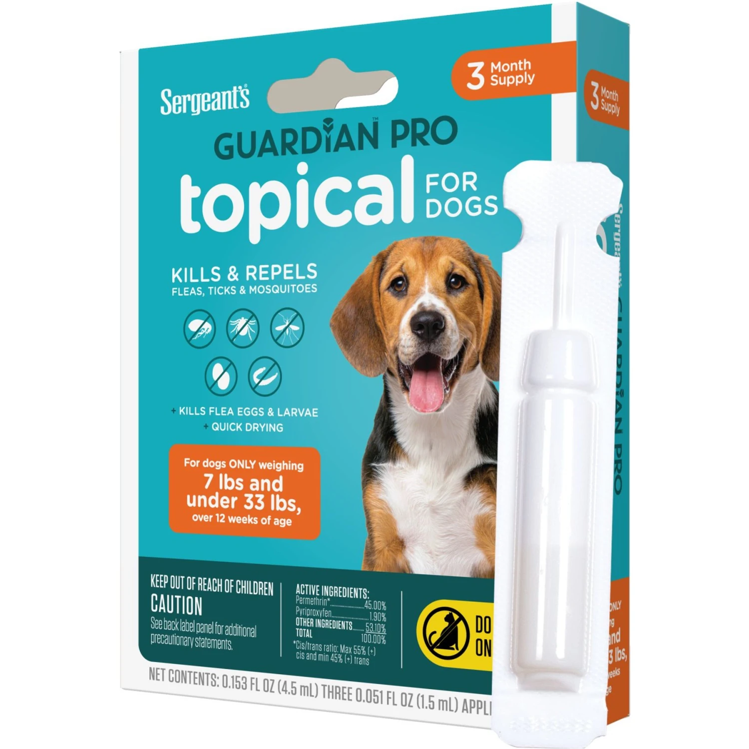 Sergeant’s Guardian Pro Dog Flea & Tick Topical Treatment, Under 33-lb, 3 Count
