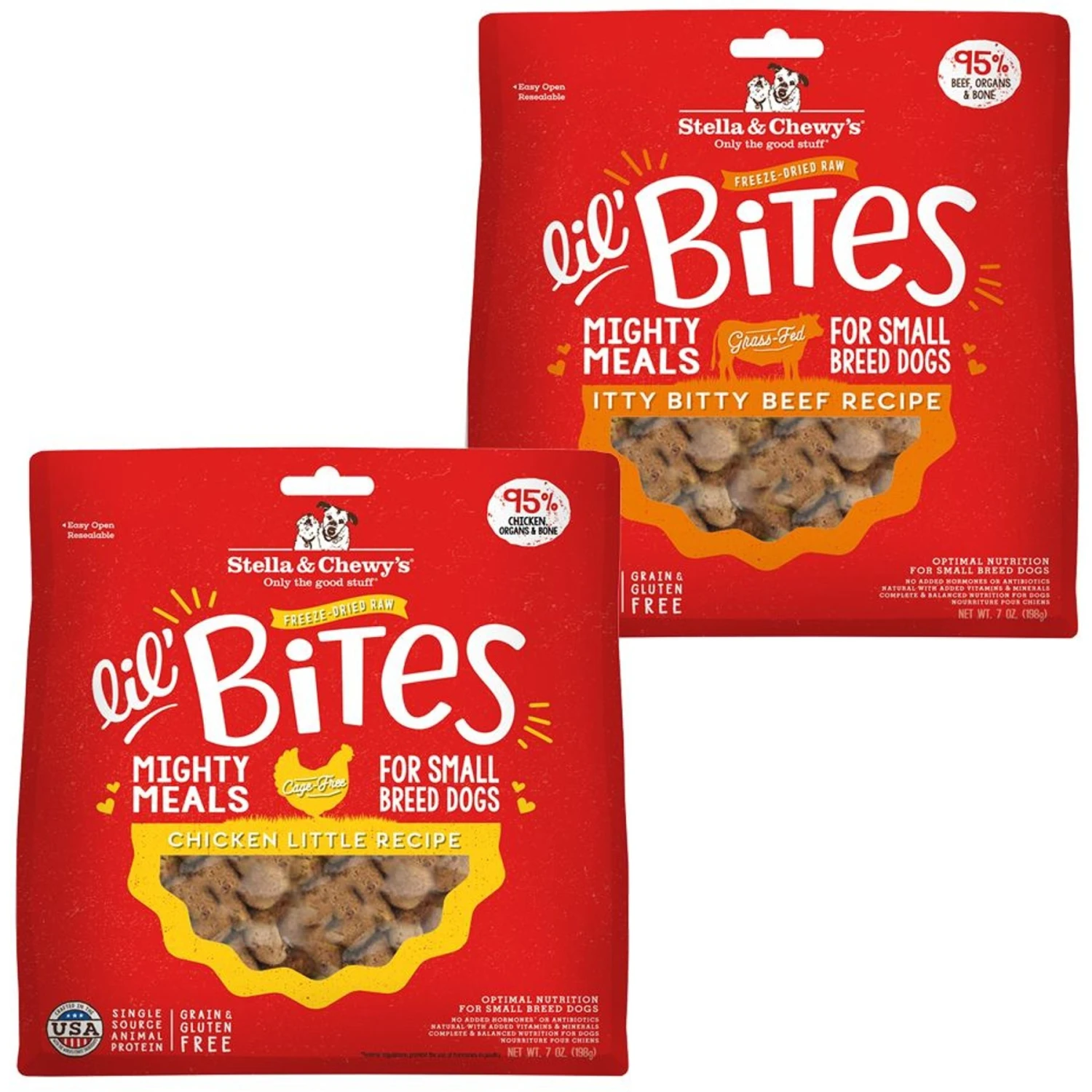 Stella & Chewy’s Lil’ Bites Chicken Little Recipe Small Breed Freeze-Dried Raw Dog Food & Stella & Chewy’s Lil’ Bites Itty Bitty Beef Recipe Small Breed Freeze-Dried Raw Dog Food