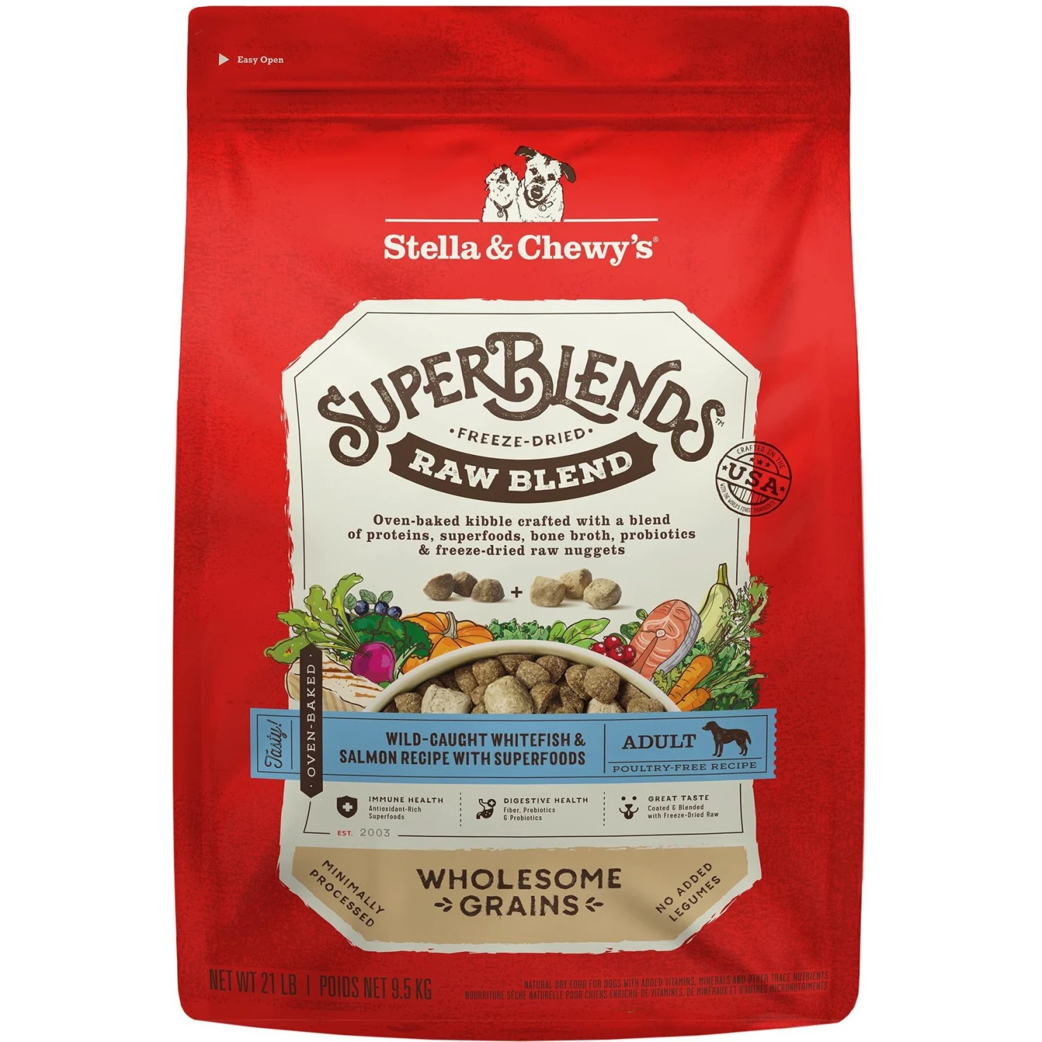Stella & Chewy’s SuperBlends Raw Blend Wholesome Grains Wild-Caught Whitefish & Salmon Recipe With Superfoods Dry Dog Food