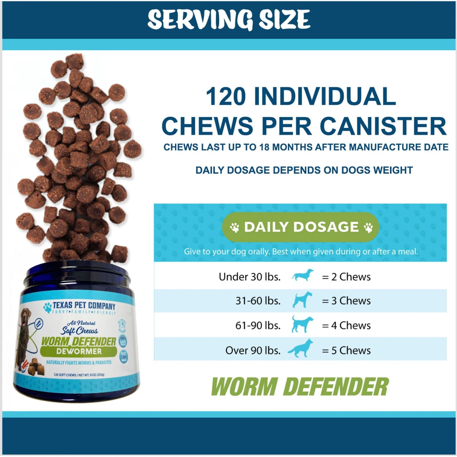Texas Pet Company Worm Defender Soft Chews Supplement, 120 Count