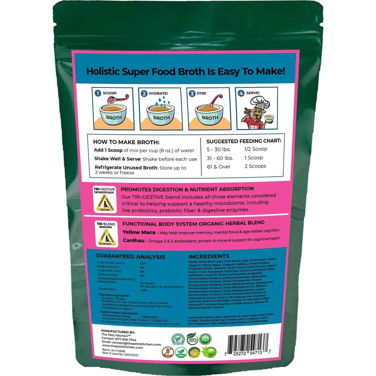 The Petz Kitchen Holistic Super Food Broth Cognitive Support Beef Flavor Concentrate Powder Dog & Cat Supplement, 4.5-oz Bag