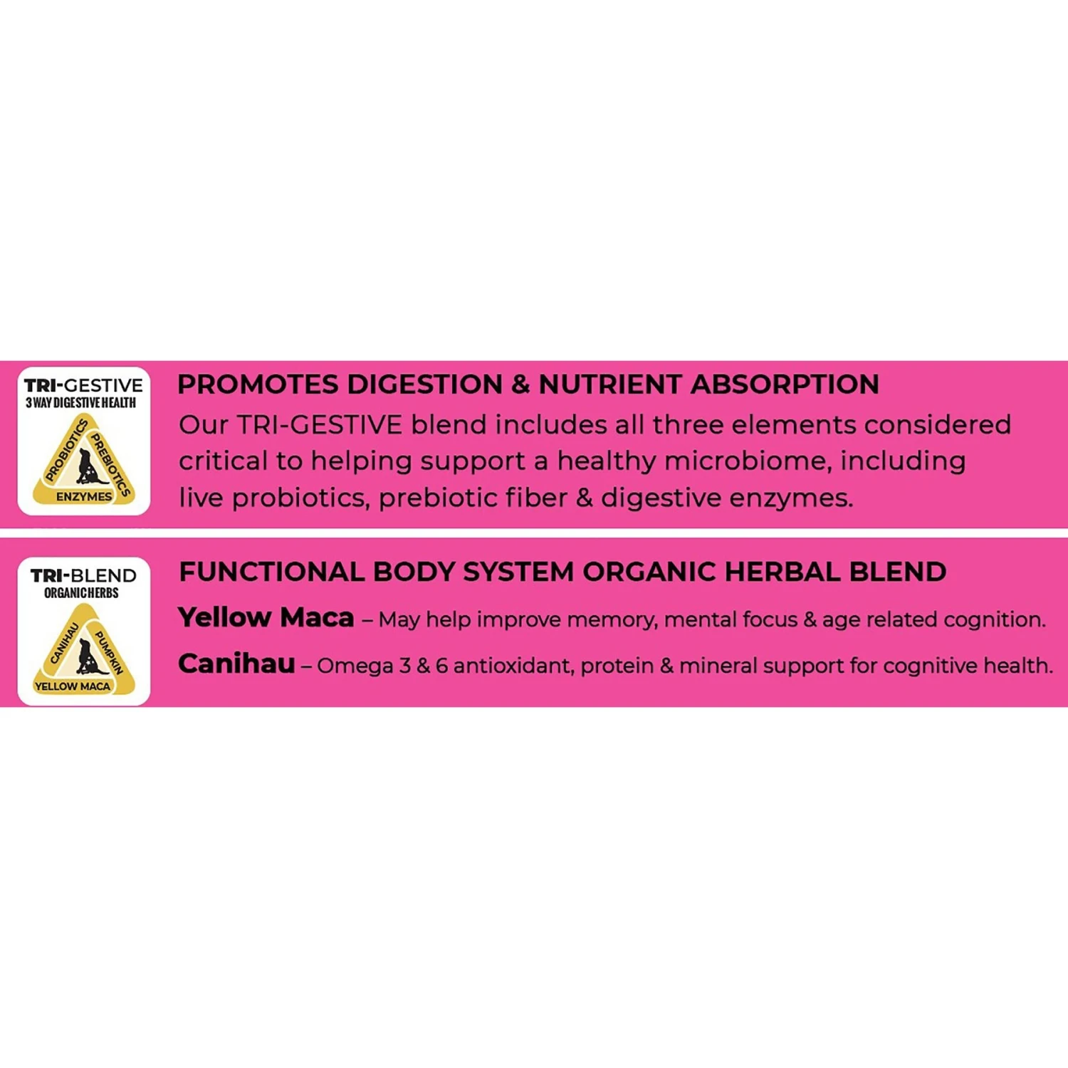 - Optimized nutrition through bioavailable probiotics, prebiotics and digestive enzymes.