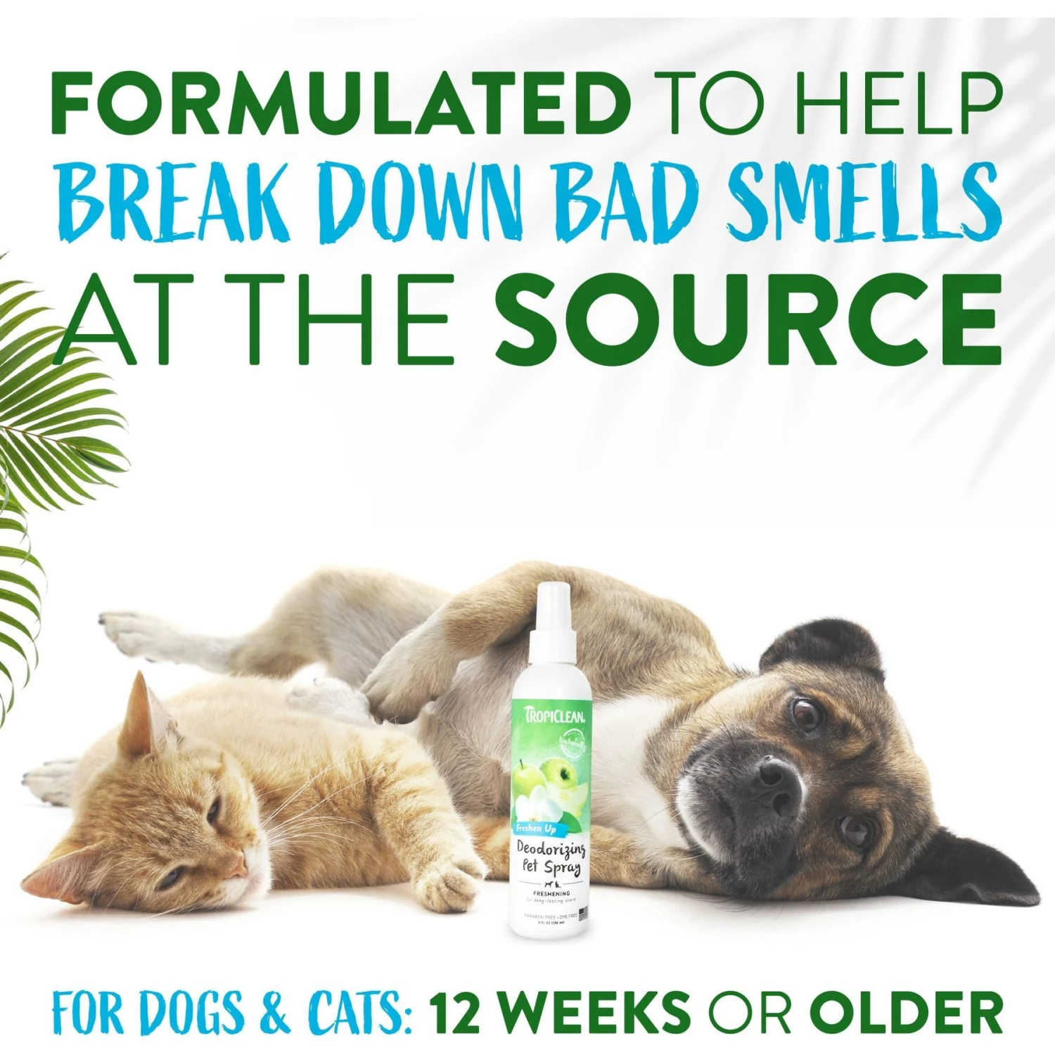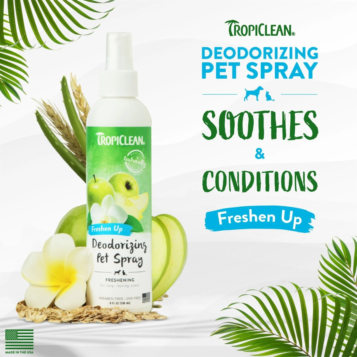 - This deodorizing pet spray works to freshen your pal’s coat with the long-lasting scent of ripe green apples.