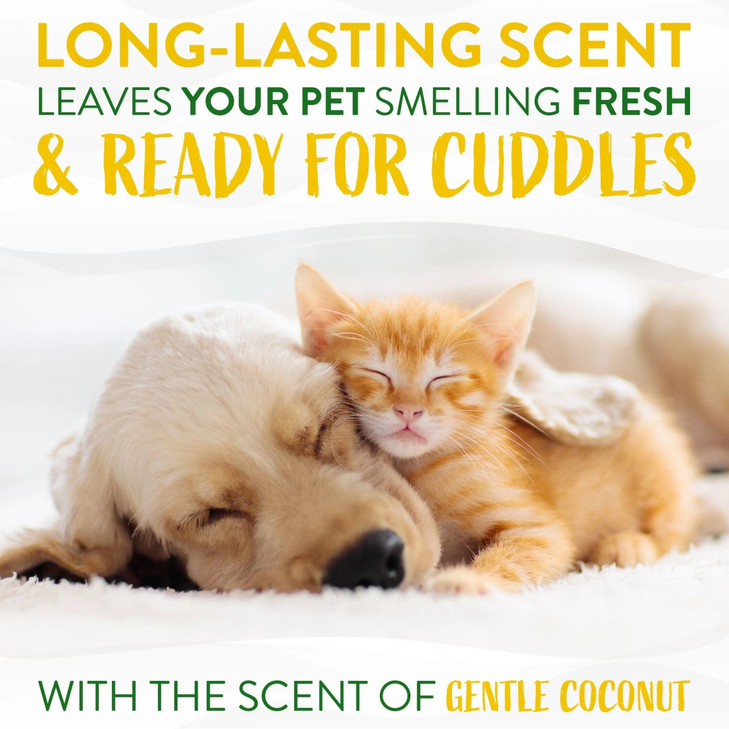 - Your pup will enjoy this dry shampoo with its gentle formula that will leave her coat with subtle coconut scent, making it paw-fect for pets with sensitive skin.