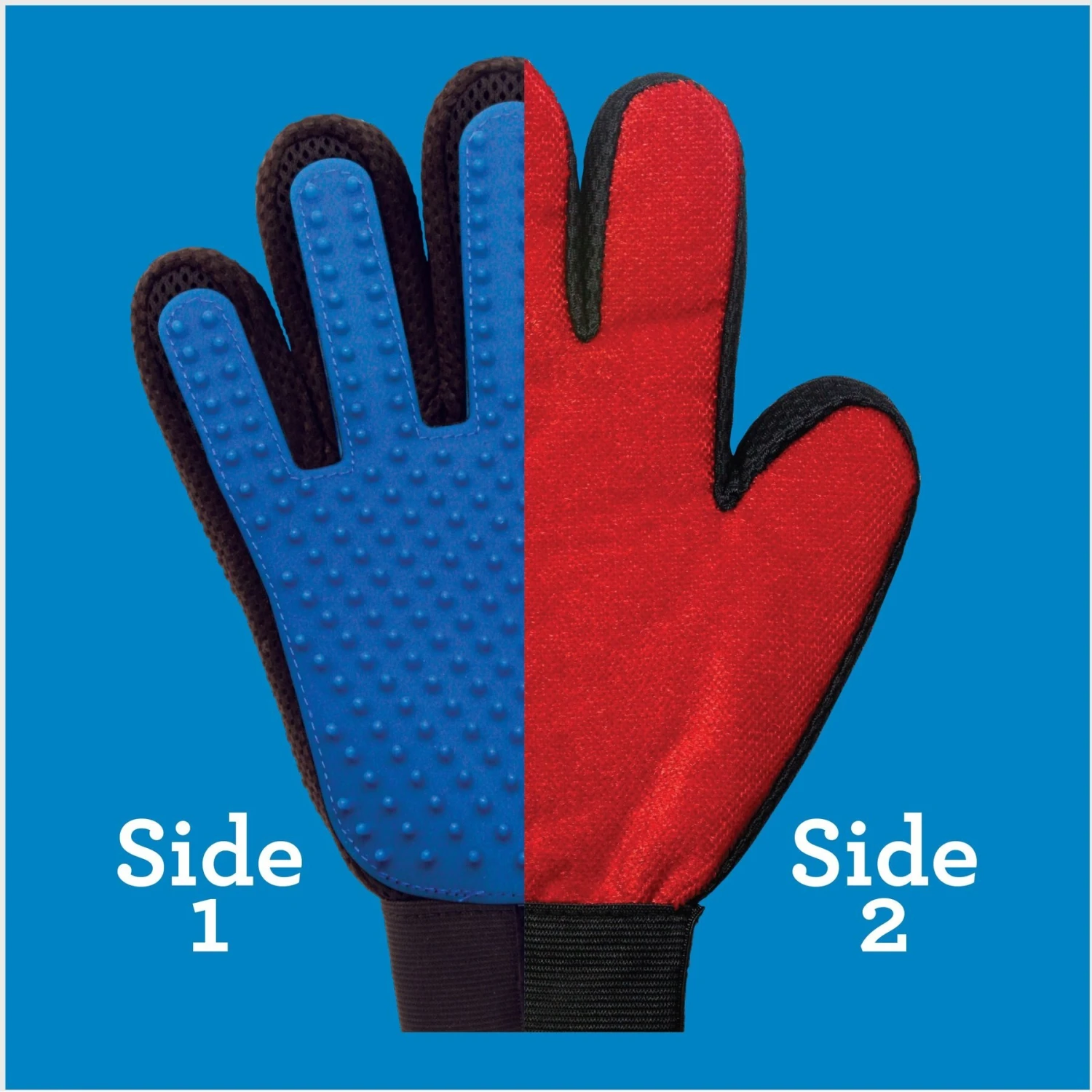 - Flip the two sided glove and use the red side to remove pet hair from furniture, clothes and carpets.