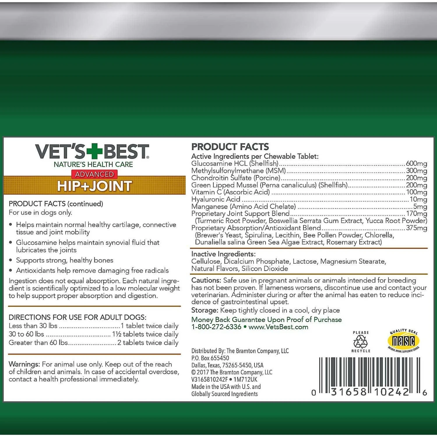 Vet’s Best Advanced Chewable Tablets Joint Supplement For Dogs & Vet’s Best Aches + Pains Vet Formulated For Dog Occasional Discomfort Hip & Joint Support Chew Supplement For Dogs