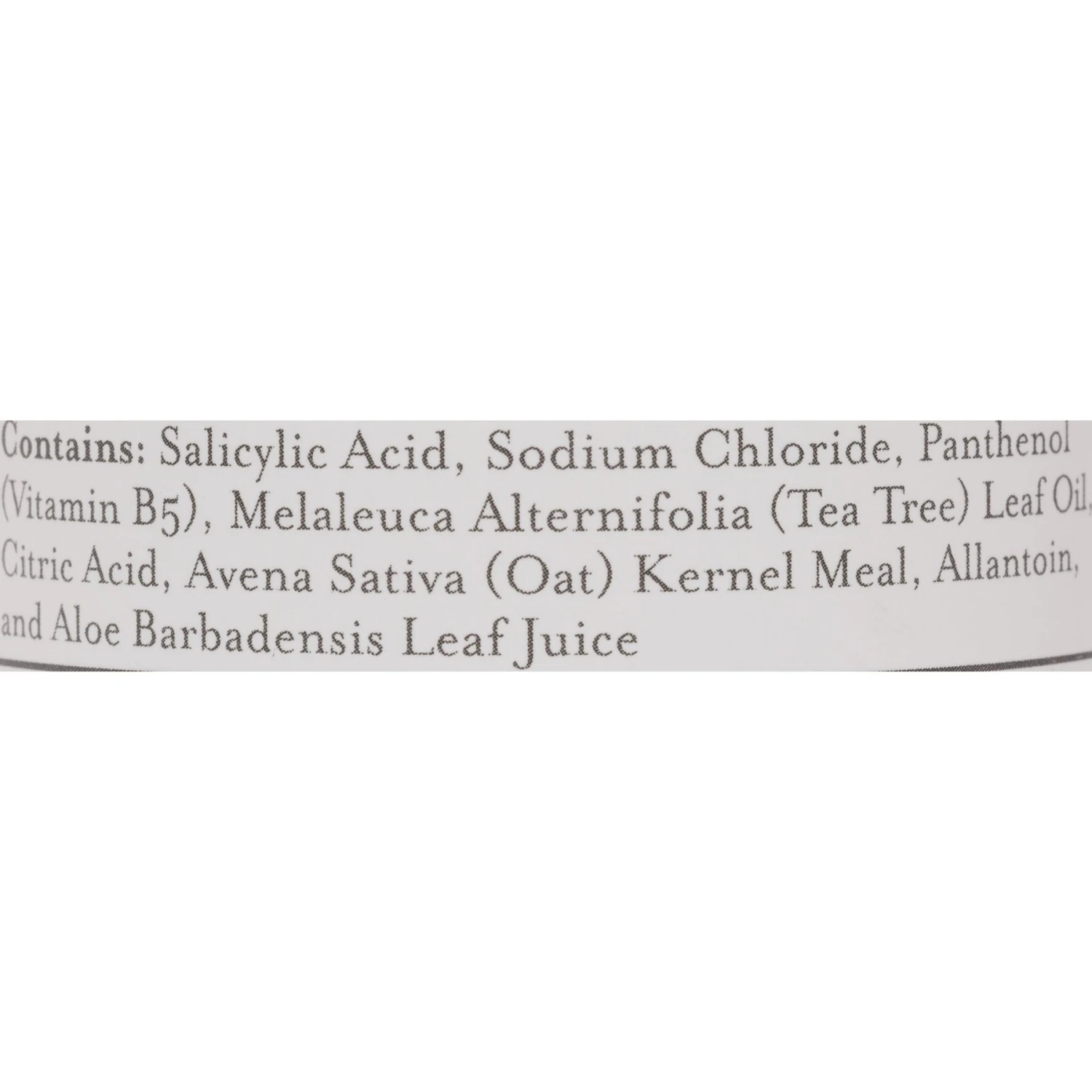 - Includes colloidal oatmeal, tea tree oil, vitamin B5 and salicylic acid.