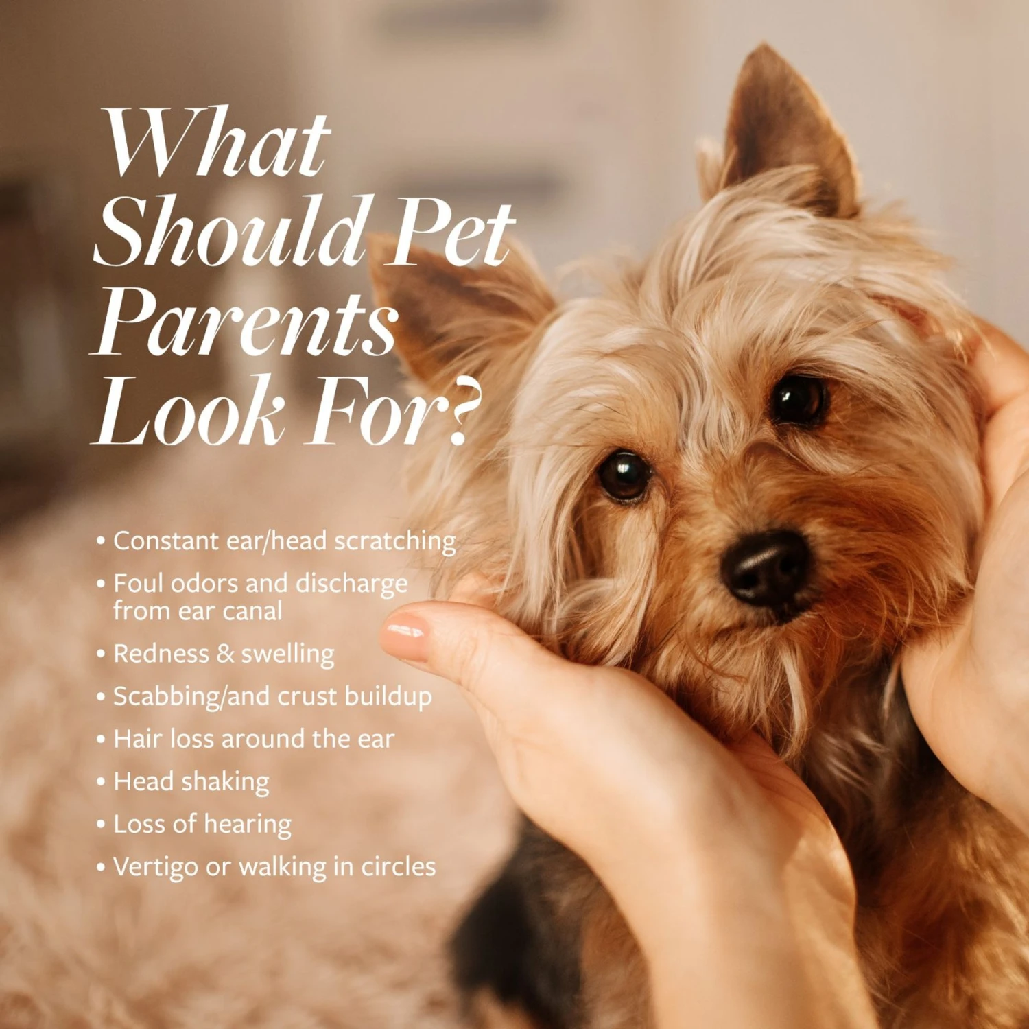 - Helps breakdown buildup that may cause foul odors and itching, scratching or head shaking.