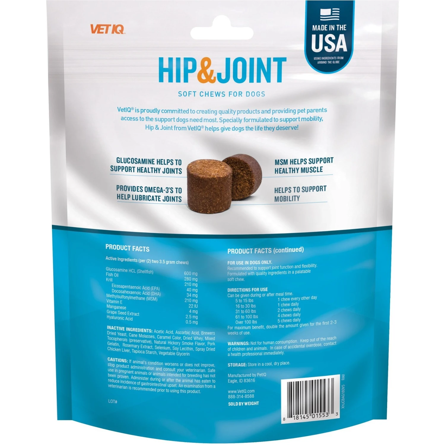 VetIQ Hip & Joint Soft Chew Joint Supplement For Dogs