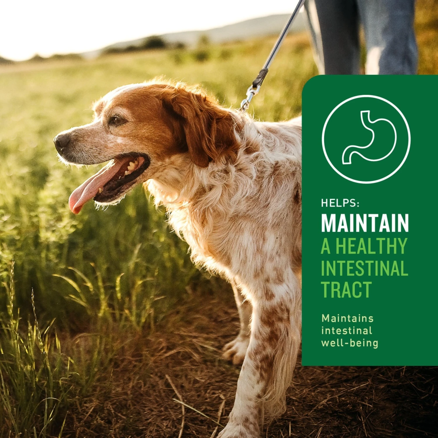 - Maintains a healthy intestinal tract by supporting your dog’s digestive organs.