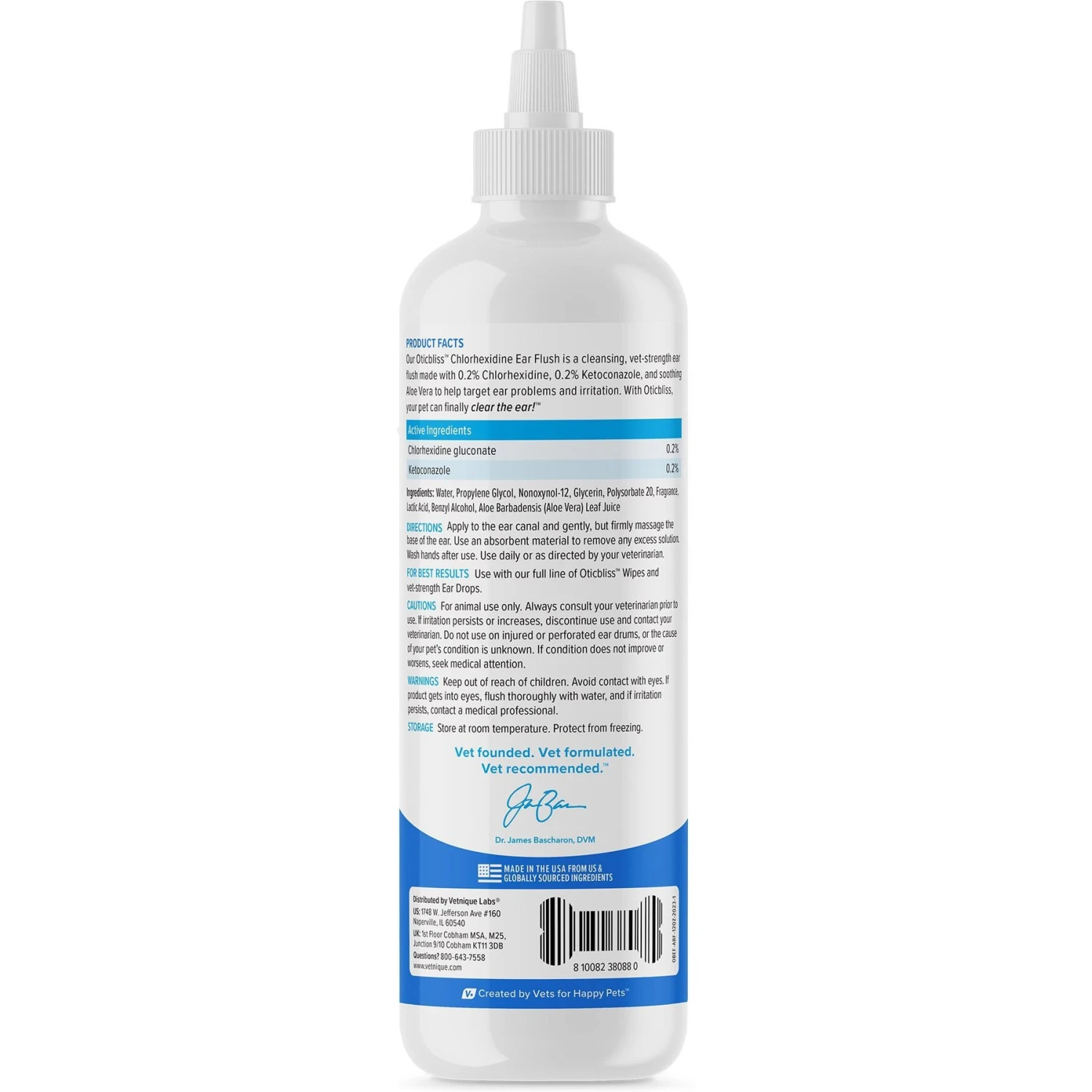 Vetnique Labs Oticbliss Ear Flush Cleaner Anti-Bacterial & Anti-Fungal Medicated Dog & Cat Ear Flush Antiseptic Rinse Cleanser