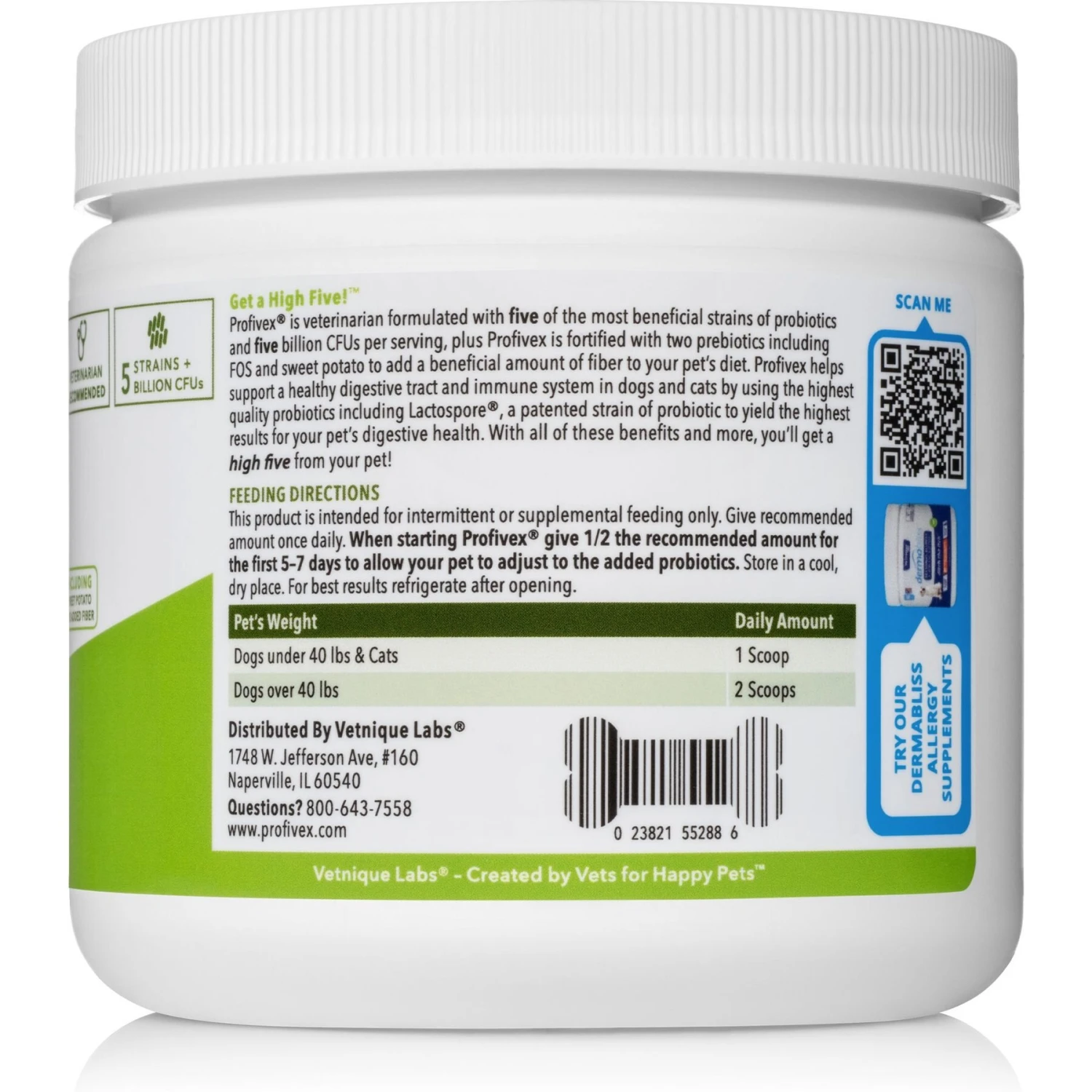 Vetnique Labs Profivex Probiotics 5-Strain Pork Pet Digestive Health Probiotic Prebiotic & Fiber Powder Dog & Cat Supplement