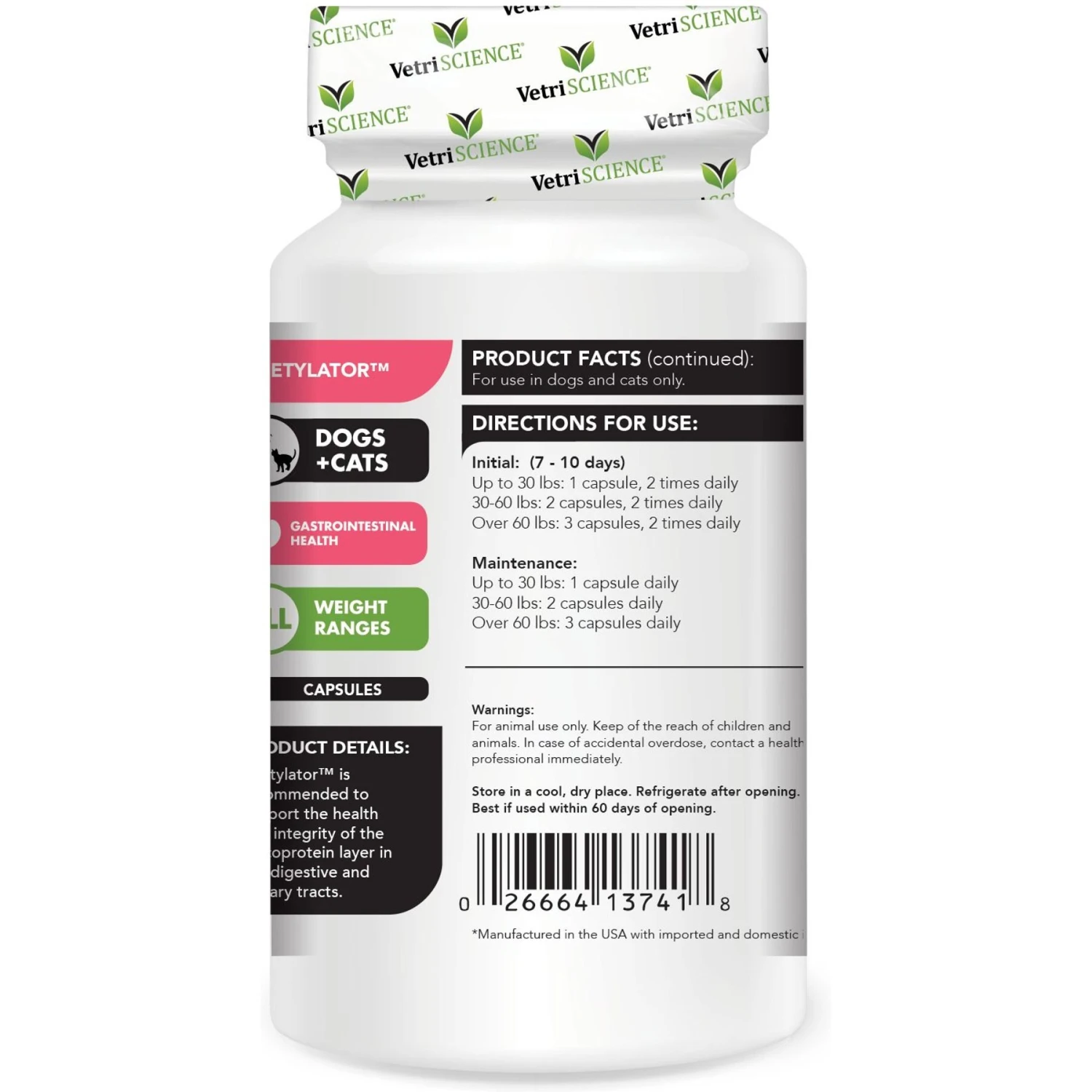 VetriScience Acetylator Capsules Digestive Supplement For Cats & Dogs