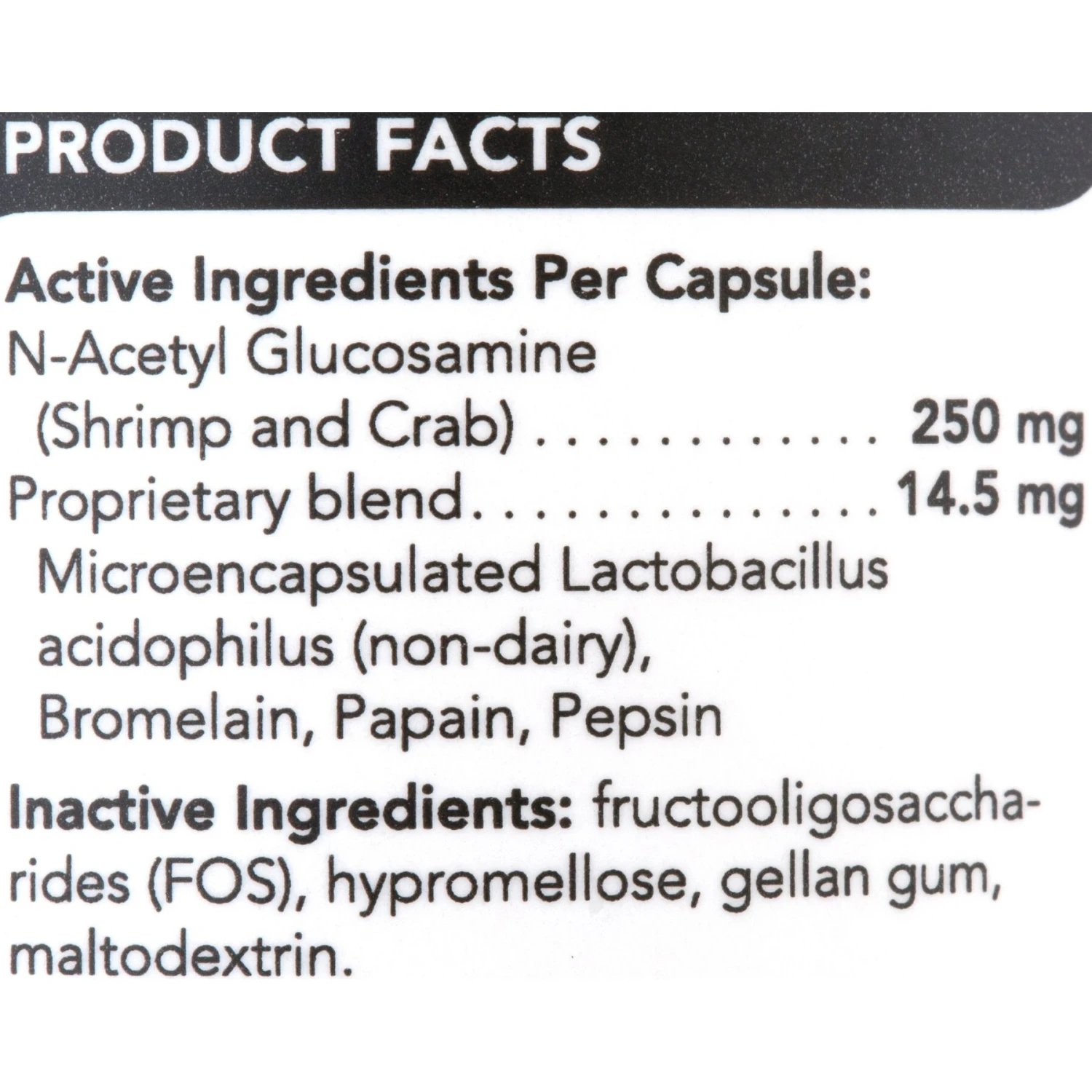 - Supports proper function of gut, bowel, and urinary tract health with a combination of N-acetyl glucosamine, beneficial bacteria lactobacillus acidophilus, digestive enzymes, and alfalfa