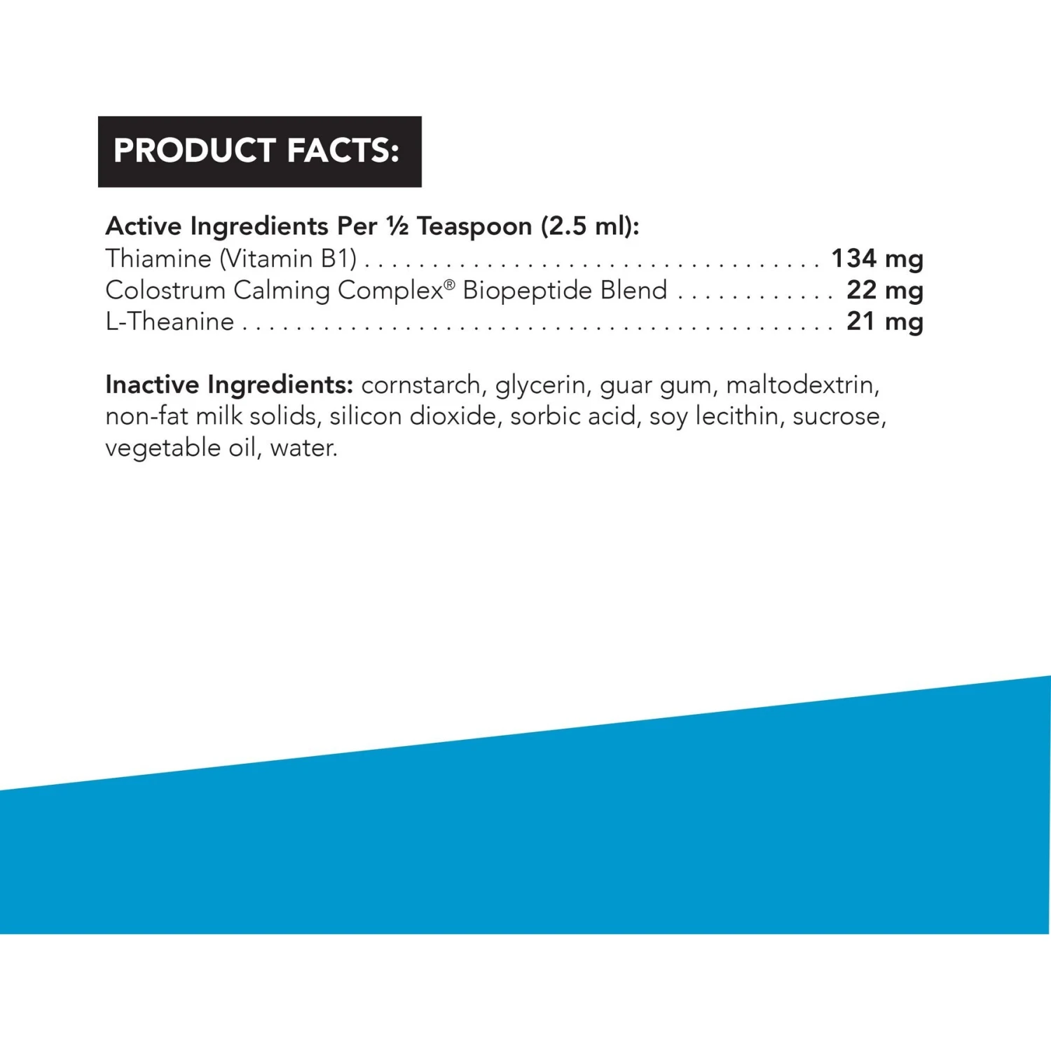 - Contains three main ingredients to support calming in cats and dogs: C3 colostrum calming complex, l-theanine and thiamine