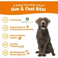 Zesty Paws Skin & Coat Bites Bacon Flavored Soft Chews Omega Fish Oil Supplement For Dogs