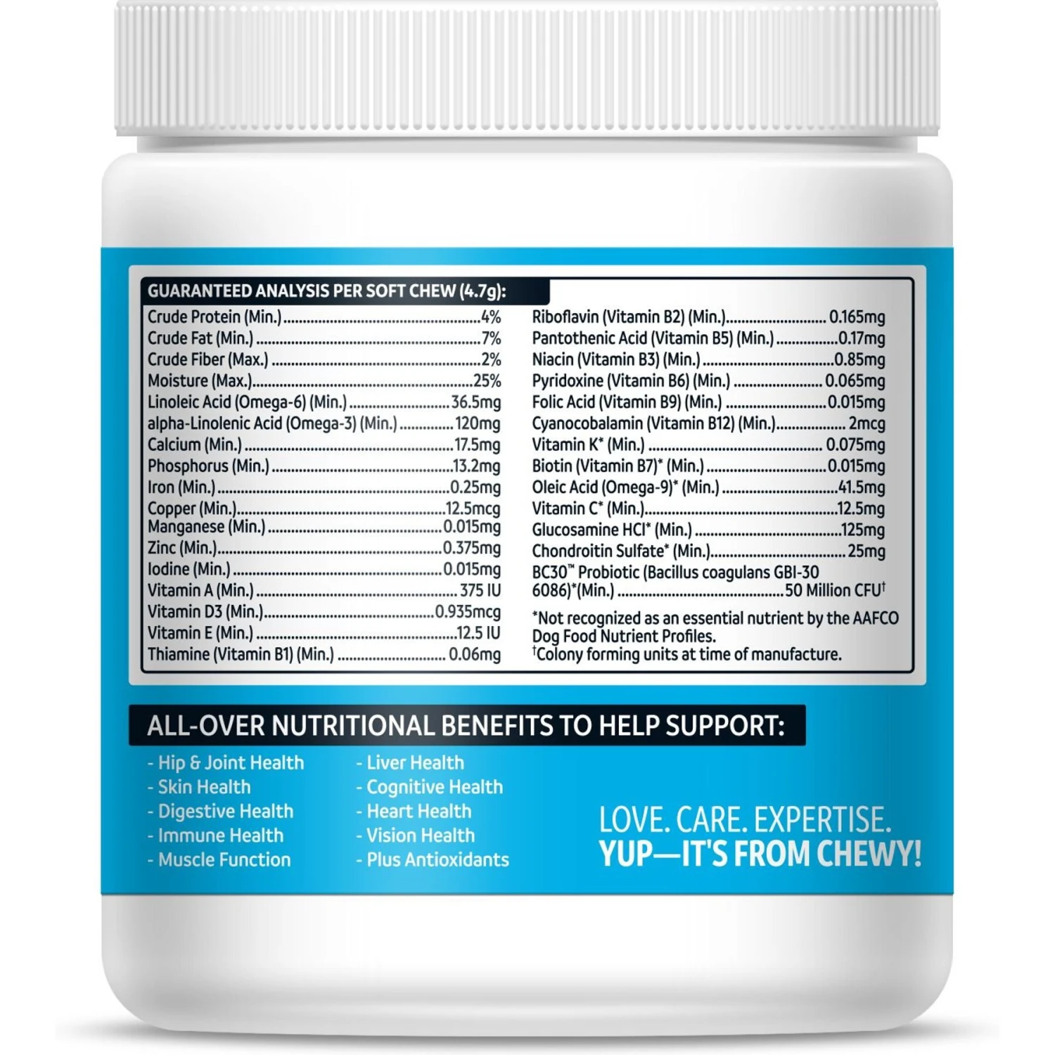 - Also contains BC30™ Probiotic to help maintain gut health, glucosamine and chondroitin to help support mobility, and omega fatty acids to backup that skin and coat health. This team was voted most likely to put the pep in your pup’s step!