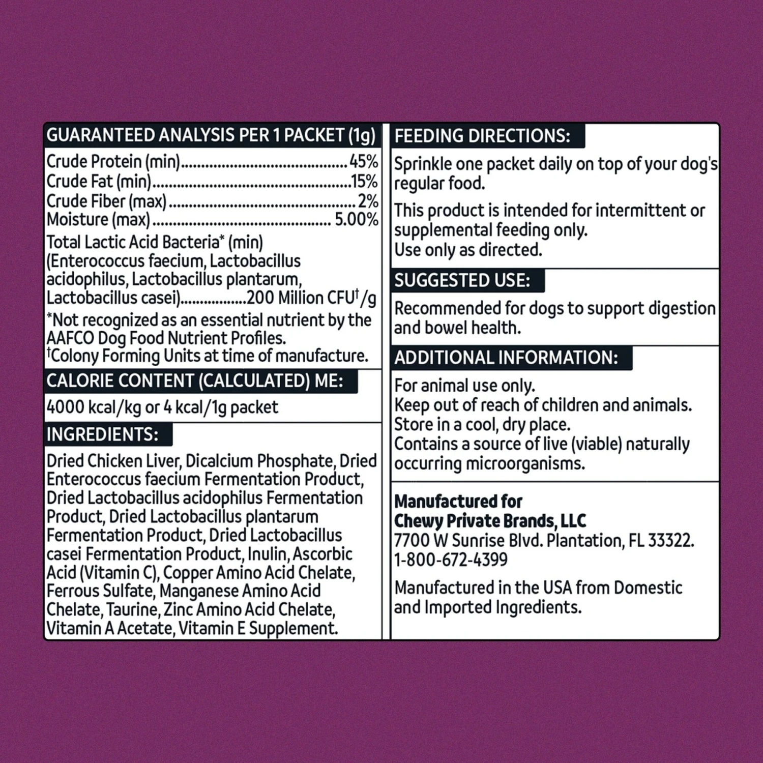 - Features prebiotic fibers to help support a healthy gut environment that supports good bacteria that lives inside their gut.
