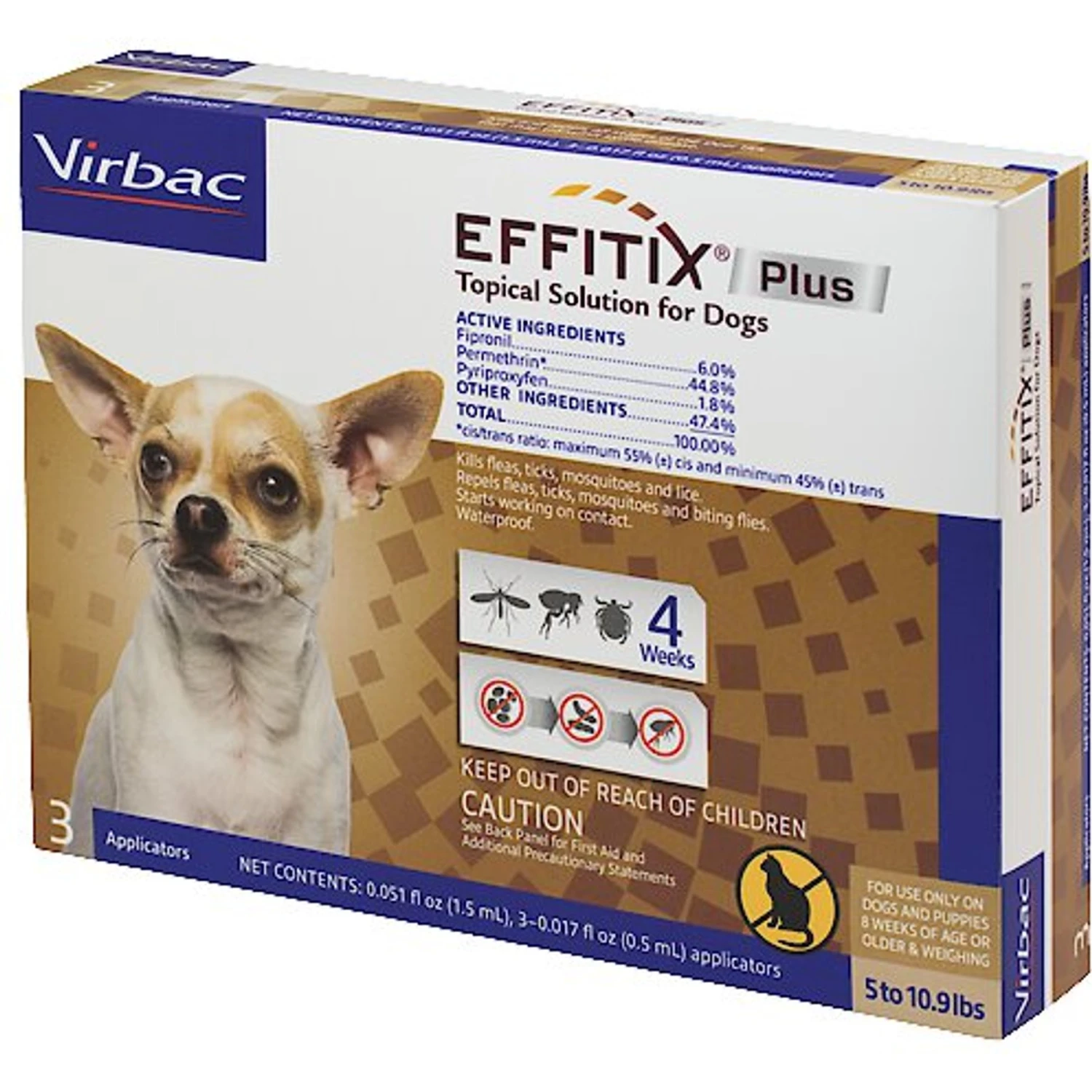 Virbac EFFITIX Flea & Tick Spot Treatment For Dogs, 5-10.9 Lbs