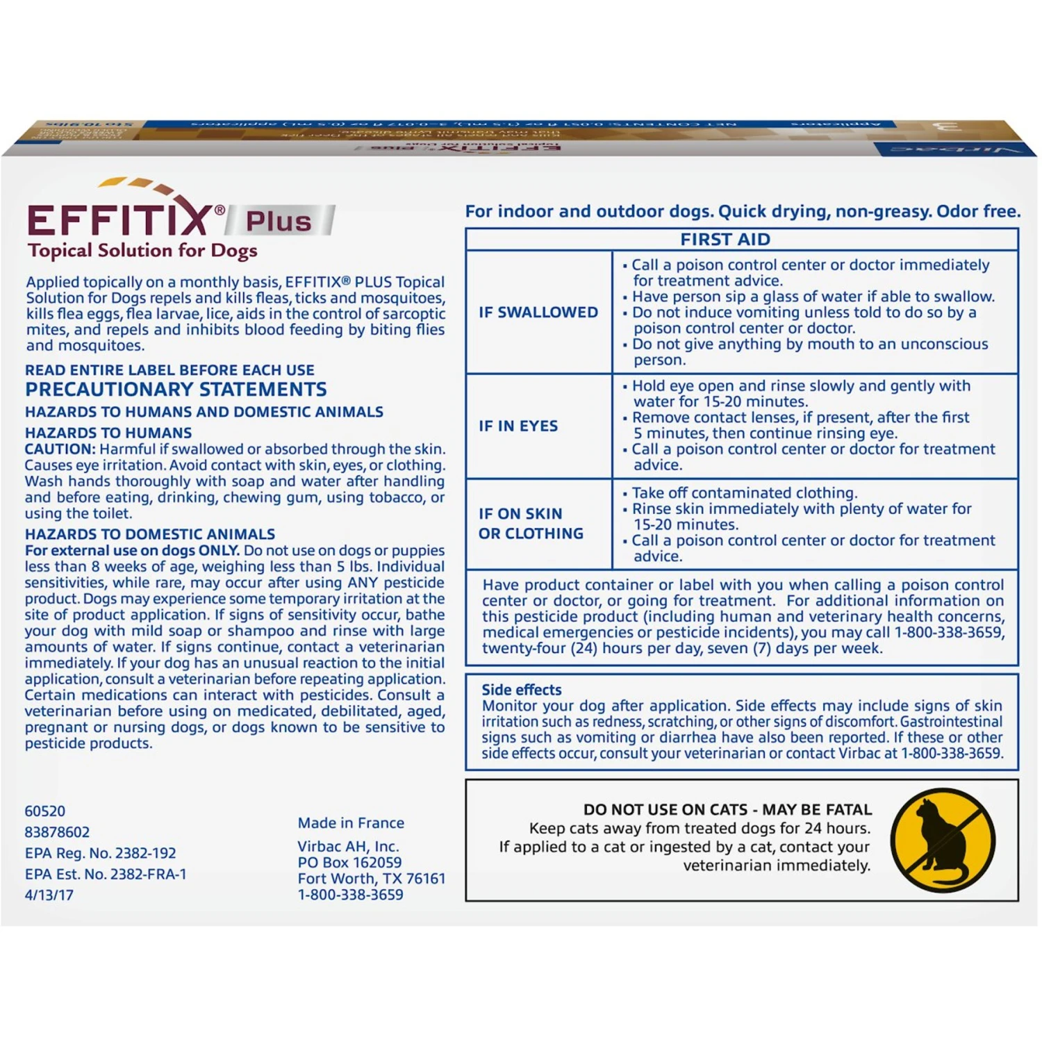 - Begins working immediately upon application to kill and repel fleas, flea eggs, flea larvae and ticks, including infestations.