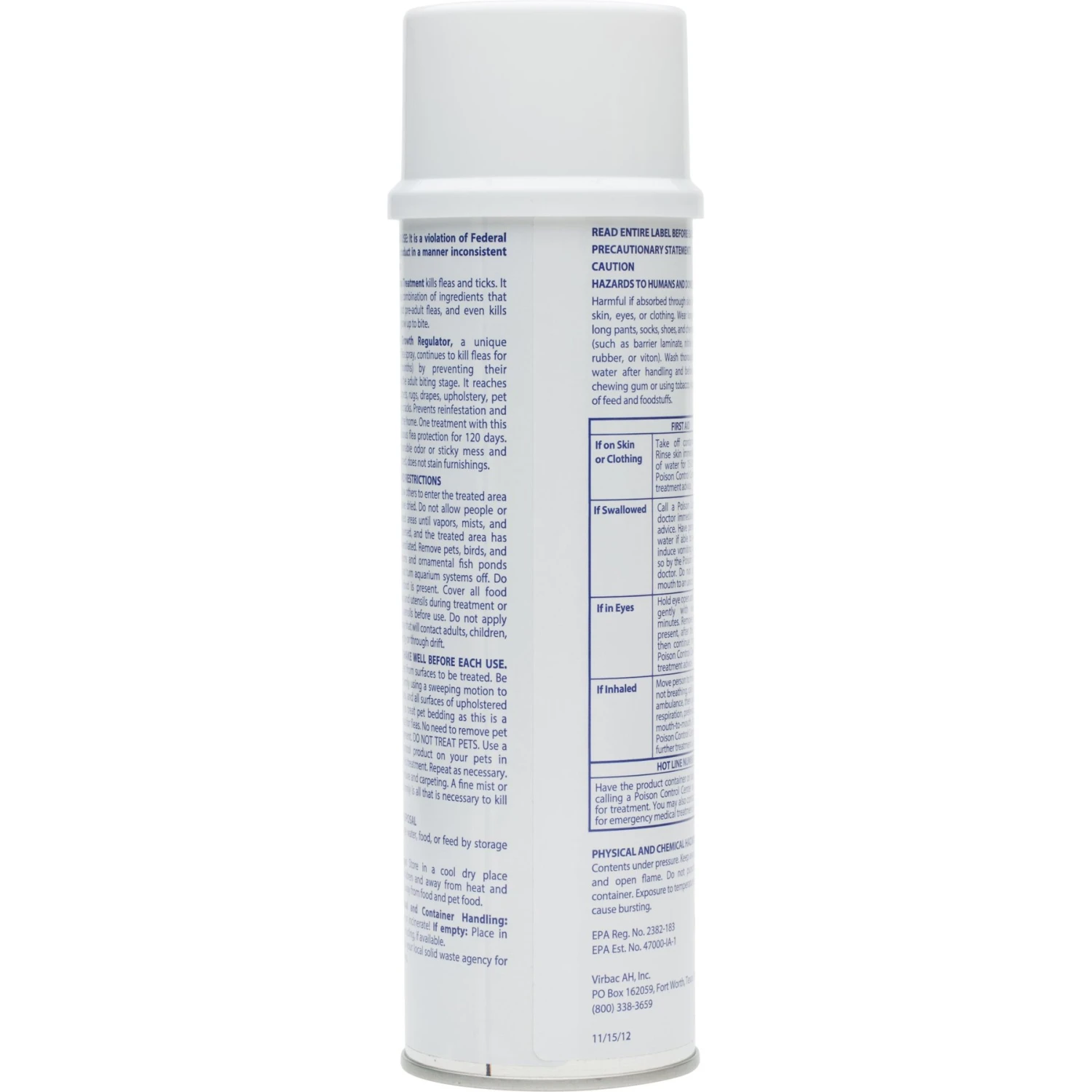 - Aerosol home treatment spray containing synthetic pyrethroids that quickly kills adult and larval fleas and ticks.