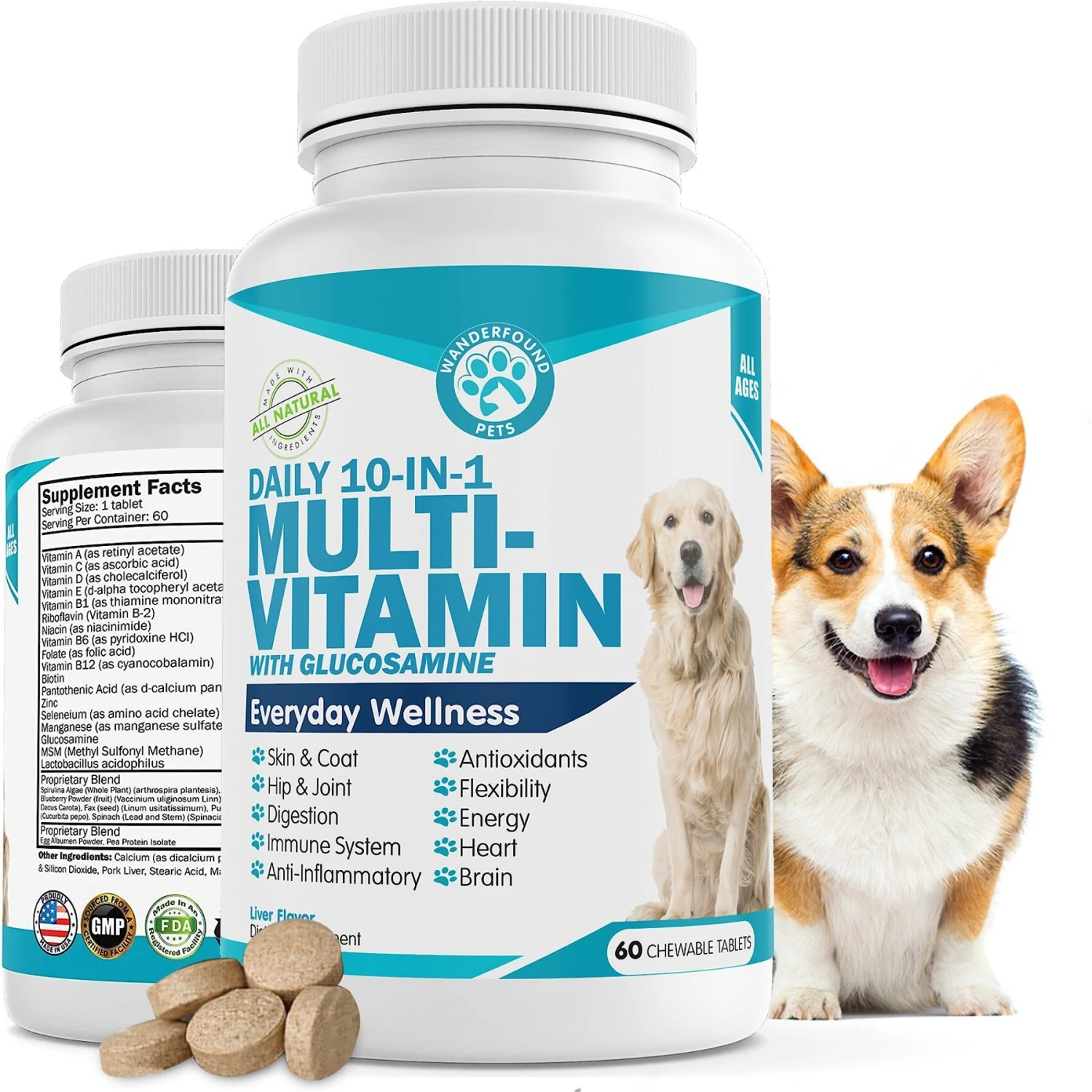 Wanderfound Pets 10-In-1 Multi-vitamin + Glucosamine Liver Flavor Dog Supplement