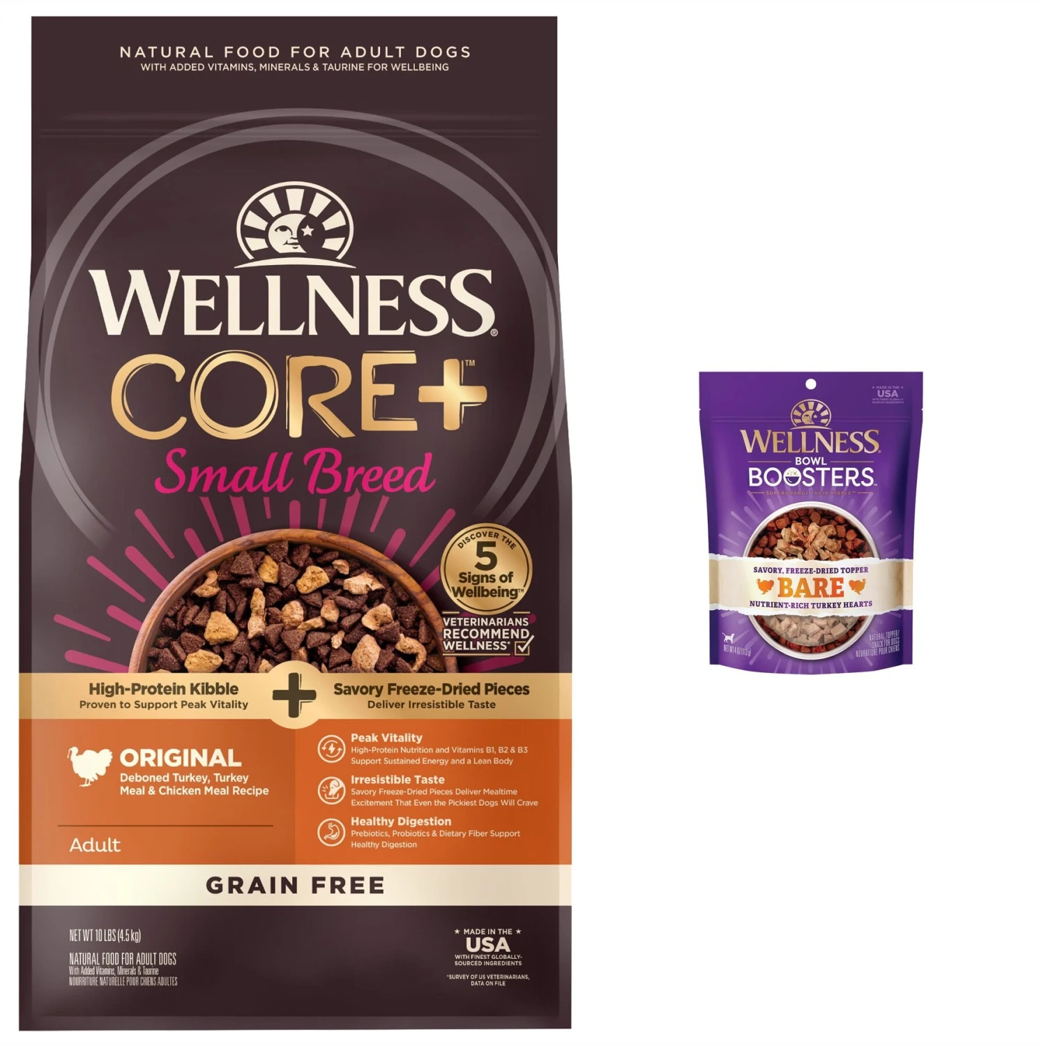 Wellness CORE RawRev Grain-Free Small Breed Original Recipe With Freeze-Dried Turkey Dry Dog Food & Wellness CORE Bowl Boosters Bare Turkey Freeze-Dried Dog Food Mixer Or Topper