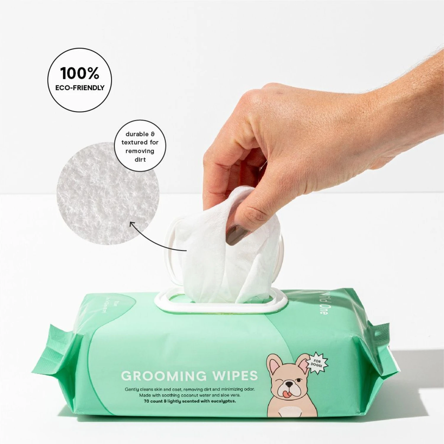 - Dog grooming wipes that are vegan, cruelty-free, and hypoallergenic.