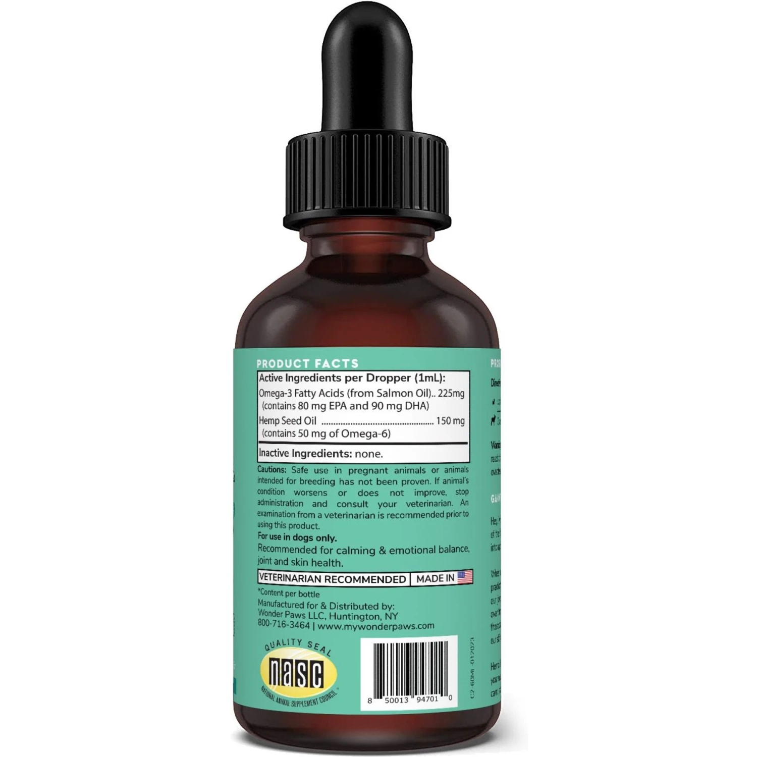 Wonder Paws Hemp Oil With Wild Salmon Oil Calming Supplement For Dogs, 2-oz Bottle
