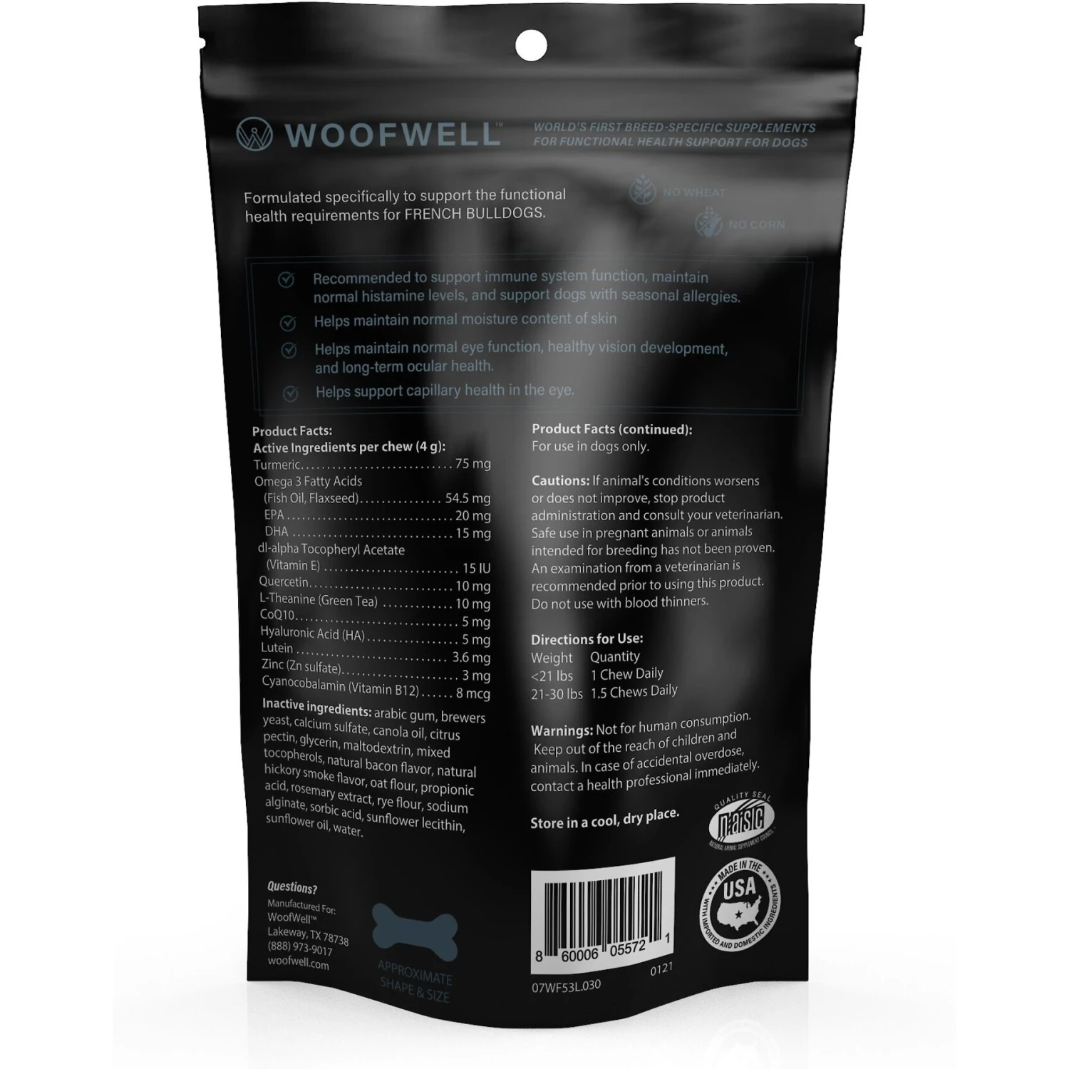 WoofWell French Bulldog Health Support Bacon Flavored Soft Chews Dog Supplement, 30 Count