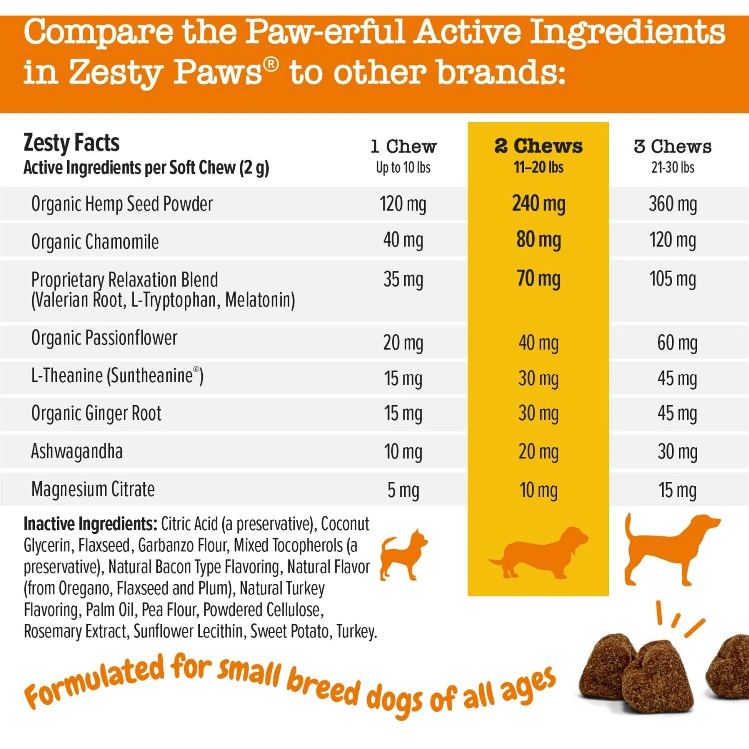 Zesty Paws Advanced Hemp Calming Mini Bites Turkey Flavored Soft Chew Composure Supplement For Small Dogs