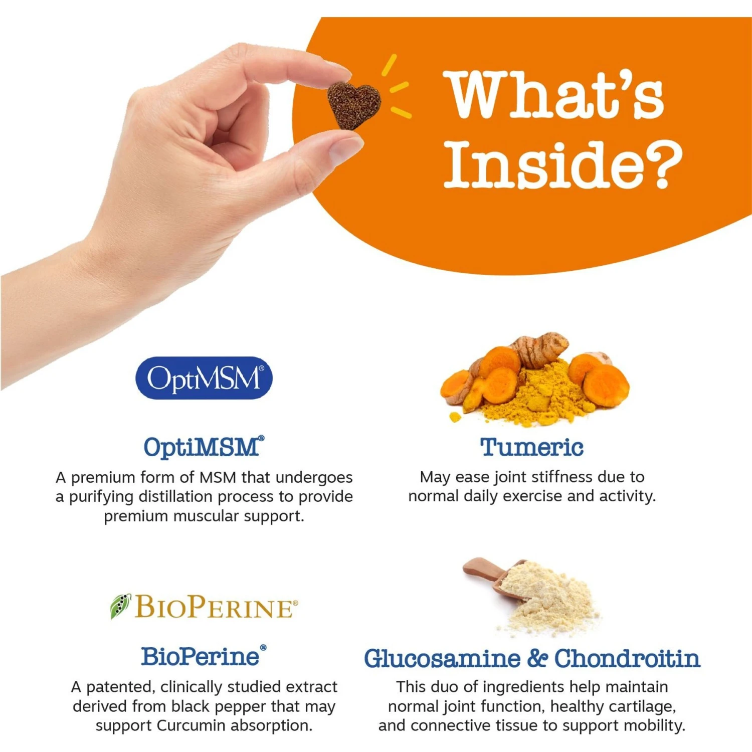 - Features 300 milligrams of OptiMSM per chew to support your pal’s muscles.
