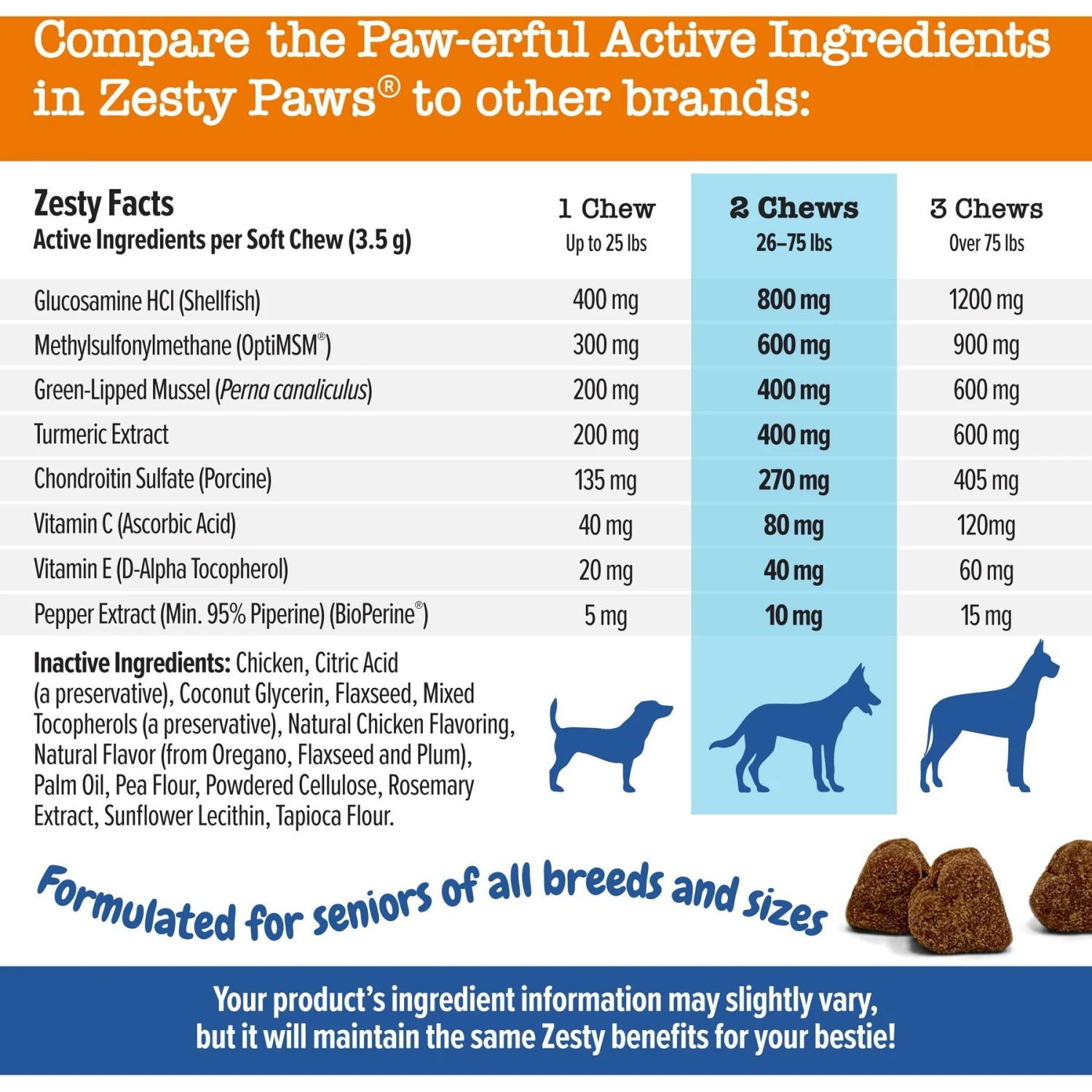 Zesty Paws Advanced Mobility Bites Chicken Flavored Soft Chews Glucosamine Hip & Joint Supplement For Senior Dogs
