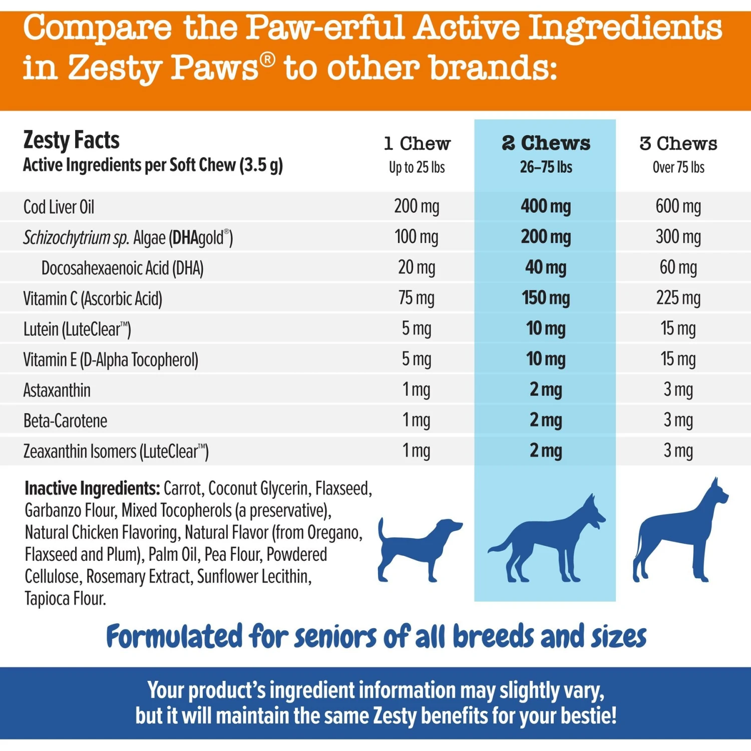 Zesty Paws Advanced Vision Bites Chicken Flavored Soft Chews Vision Supplement For Senior Dogs