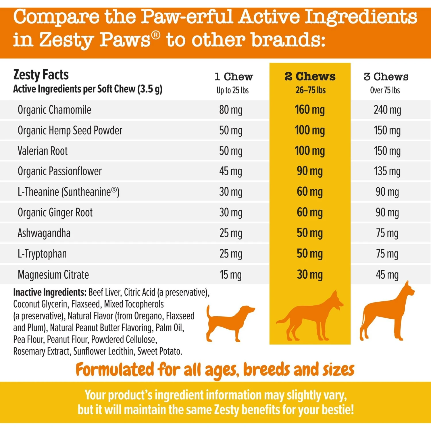 Zesty Paws Hemp Calming Bites Turkey Flavored Soft Chews Supplement For Dogs