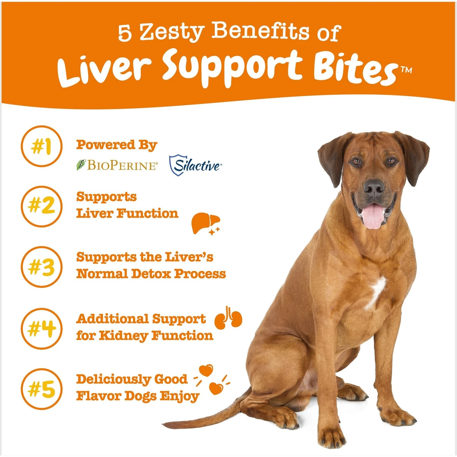 - Zesty Paws Liver Support Bites are chewable supplements that support canine liver health.