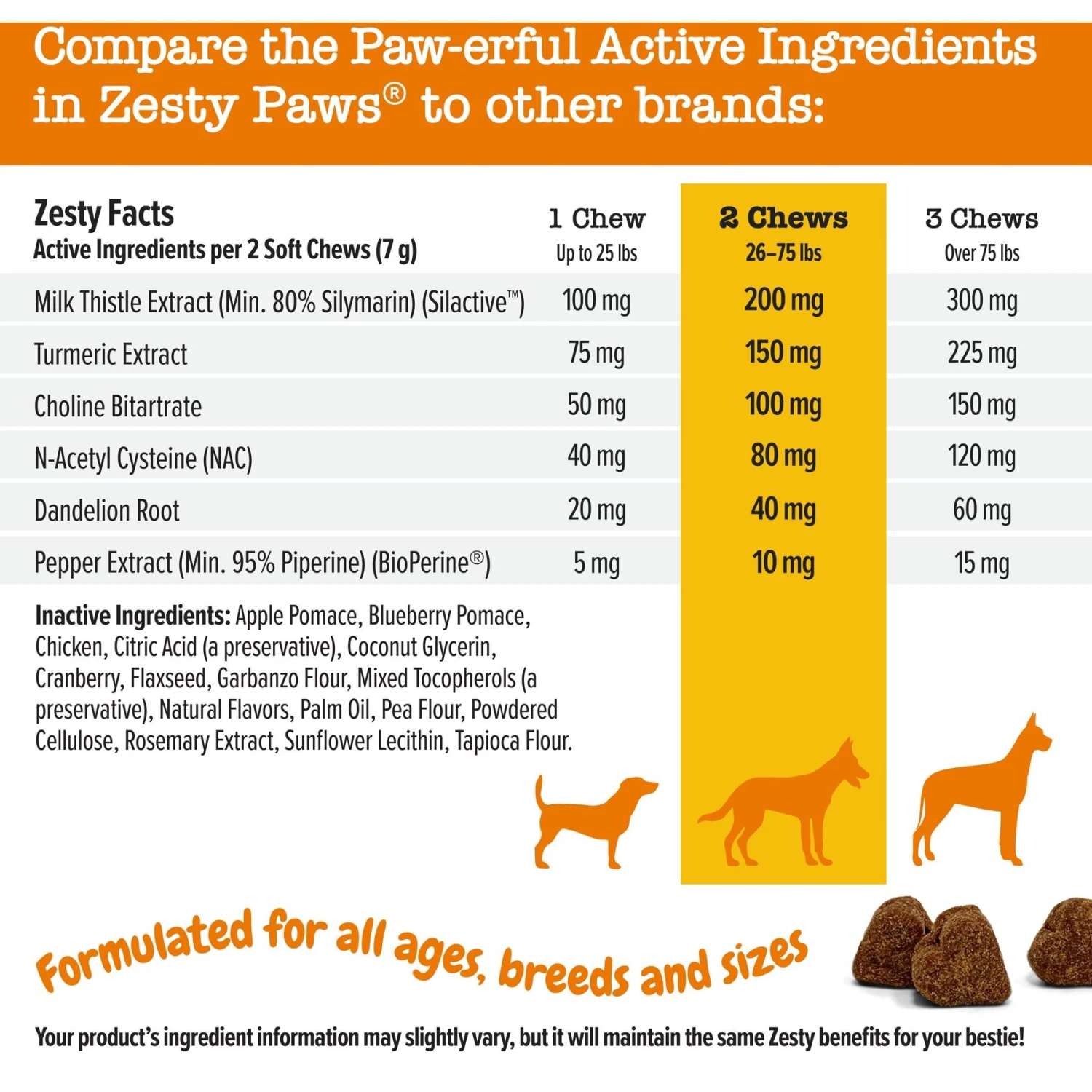 Zesty Paws Liver Support Bites Chicken Flavored Soft Chews Milk Thistle Supplement For Dogs
