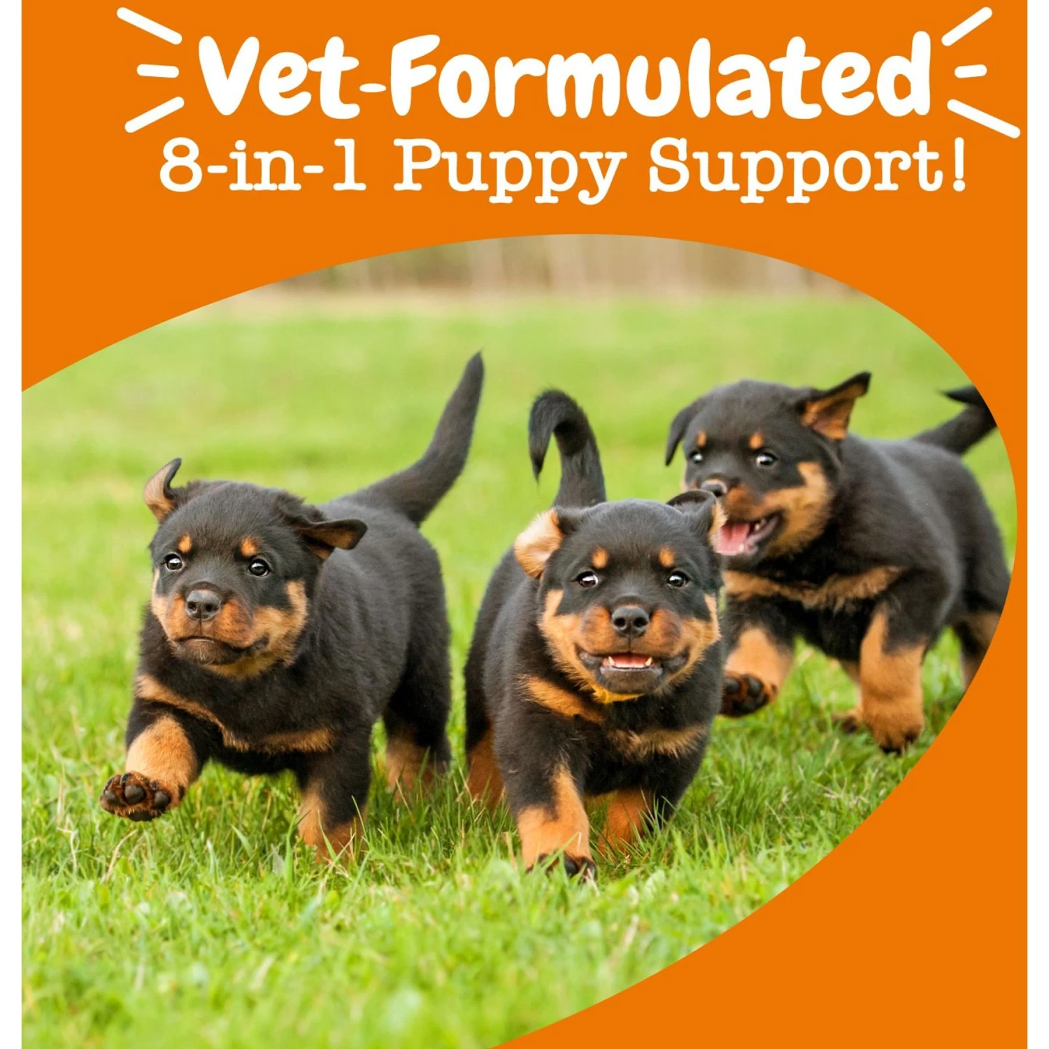 - This multifunctional soft chew supplement supports 8 areas of functional dog wellness for puppies from 8 weeks old to 1 year old.