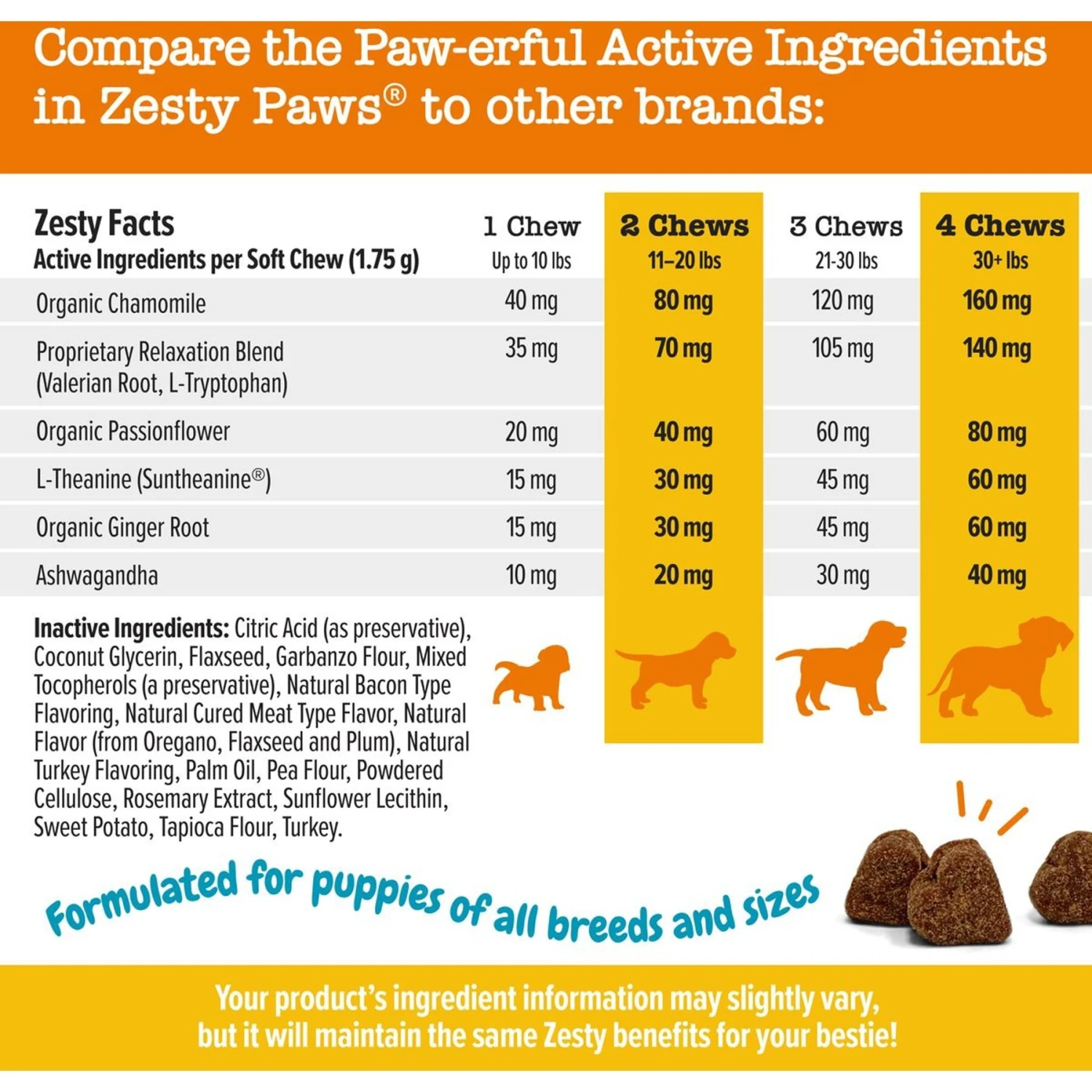 Zesty Paws Puppy Calming Bites Behavior Turkey Flavor Soft Chews Supplement For Dogs
