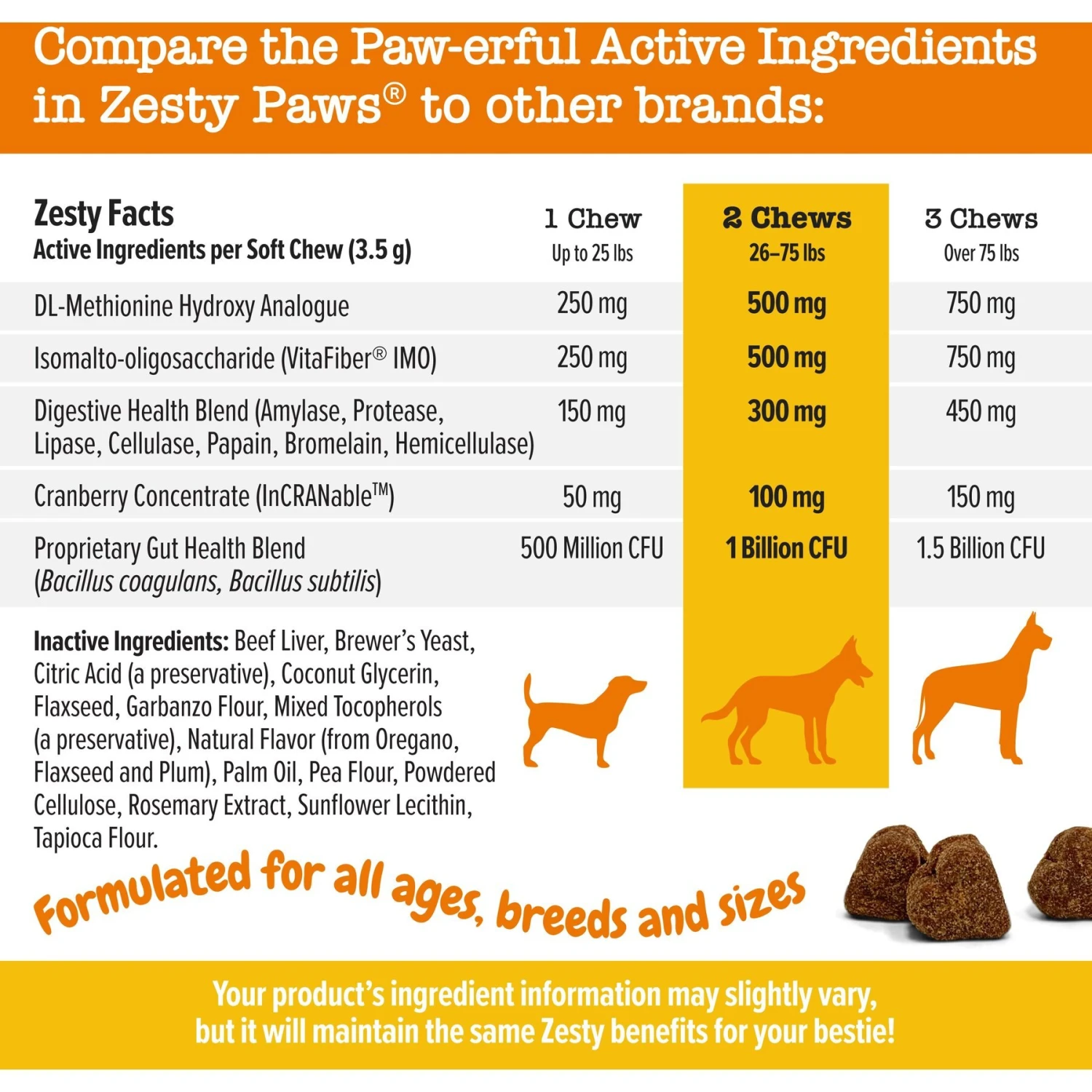 Zesty Paws Stay Green Bites Beef Flavored Soft Chews Grass Protection Urinary & Digestive Supplement For Dogs