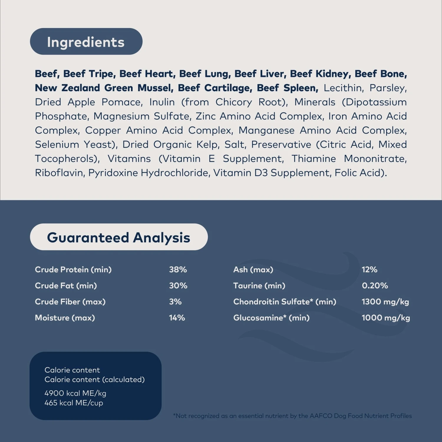 - Naturally promotes mobility, vitality and overall well-being with 10% superfood inclusions of cold-washed green tripe, New Zealand green mussels, and organic kelp.